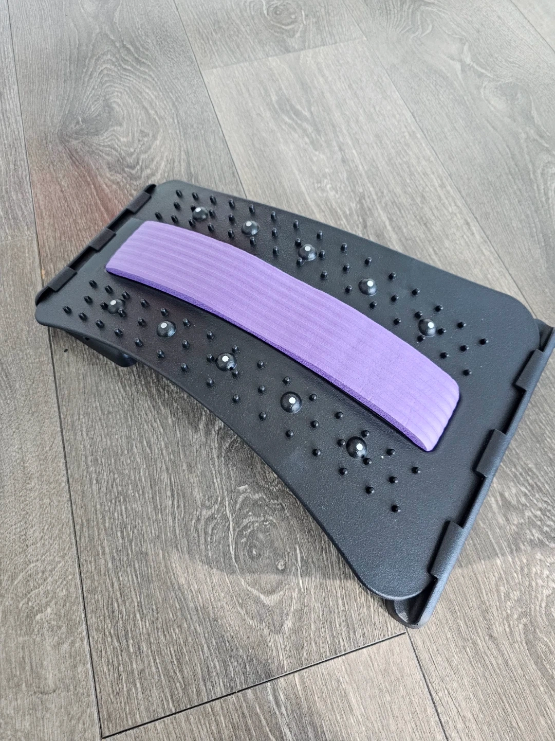 This back stretcher is designed for lumbar pain relief and spinal decompression.