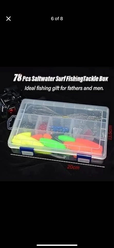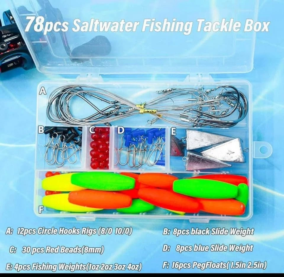 78Pcs Saltwater Surf Fishing Kit with Pompano rig, Tackle Box Included. Includes Fishing Hooks, Rig Floats, Pyramid Sinker Weights, and Sinker Slider Beads for Salt Beach Gear. Brand new, never used. Door pickup in Burlington. First and final sale: no return, please check the product during pickup to ensure it’s up to your satisfaction. Check out my other listings for brand new items at reduced prices.