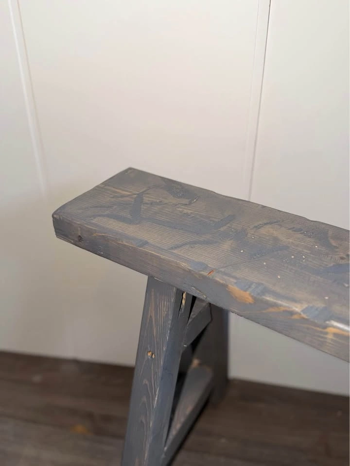 Handmade skinny decorative wood bench, hand-carved and built by me. This bench is designed as a decor / accent piece, not for sitting. Its narrow profile makes it perfect for styling small spaces and adding character without taking up room.