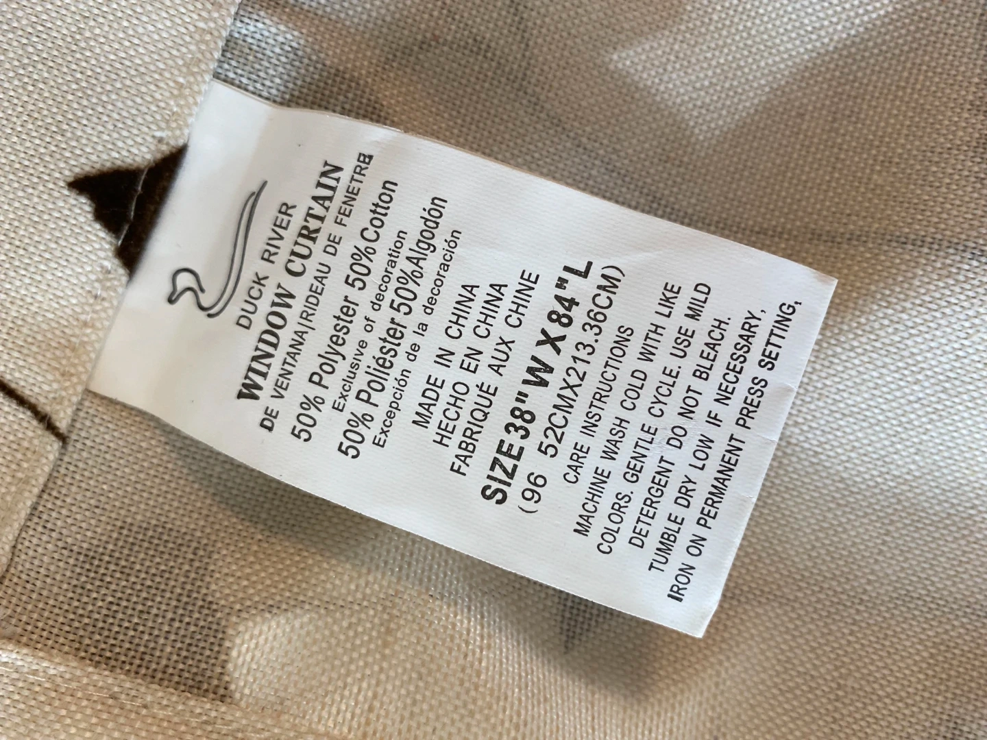 NEW! Sister bought them and before putting them up, they moved out of the country and these remained in a bag. These beautiful curtains are made with 50% polyester and 50% cotton. They measure 38 inches wide by 84 inches long.