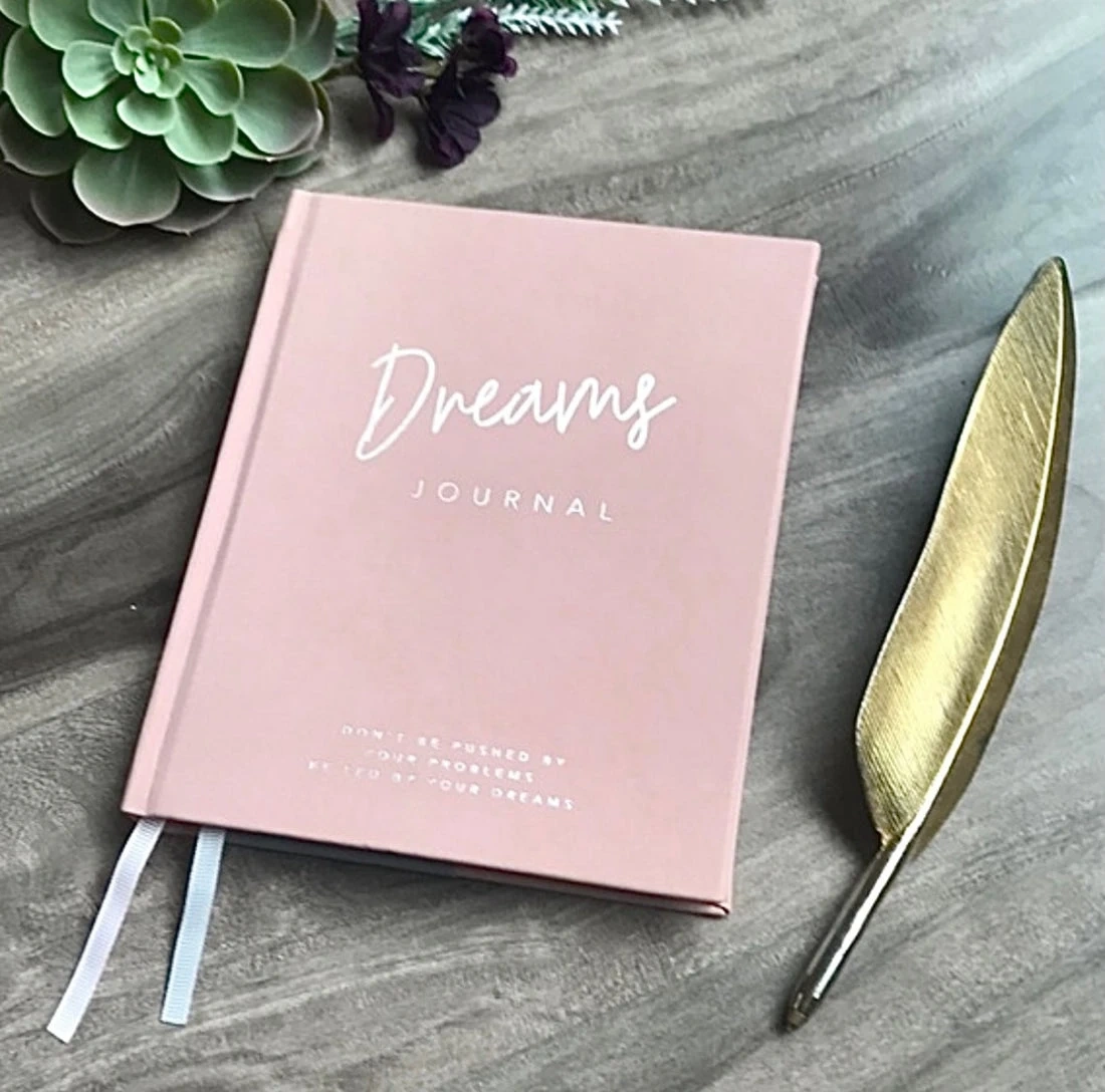 This Dreams Journal is designed to help you explore your passions and purpose. It includes sections for your dreaming vision board and lists of dreams for the next year, three years, five years, and beyond. Pink hardcover with ribbon bookmarks.