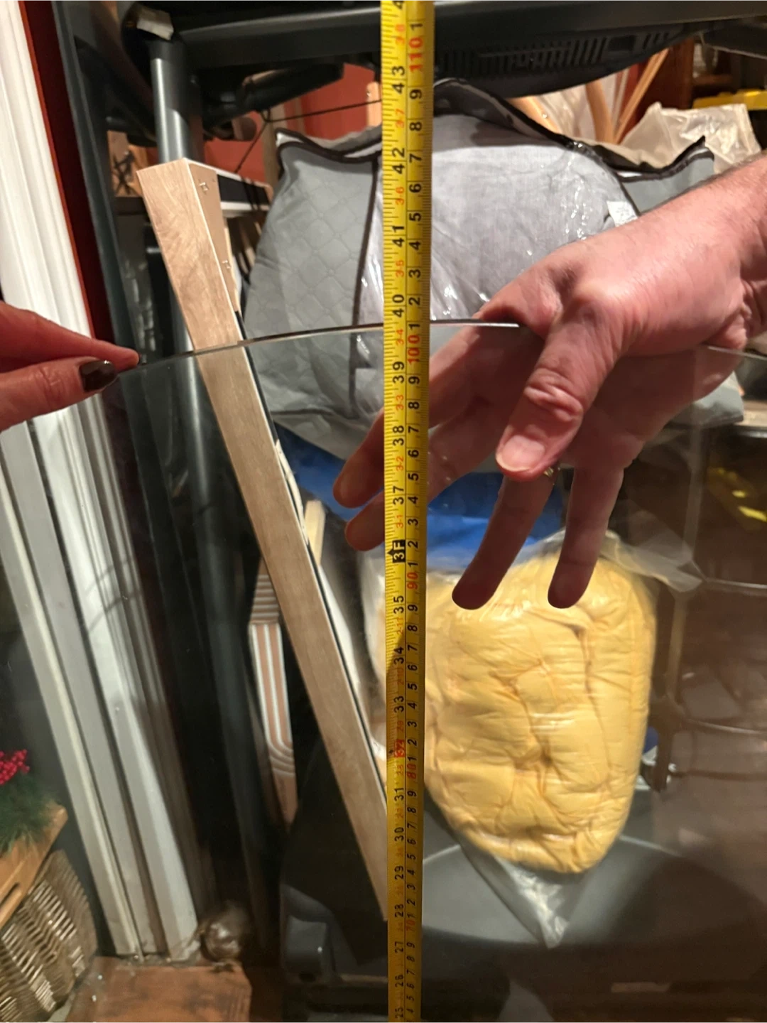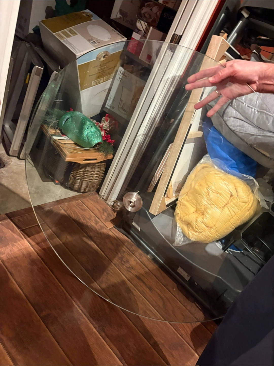 Round glass tabletop with a sturdy chrome pedestal base. Tabletop is 40 inches in diameter. Perfect for a breakfast nook or small dining area!