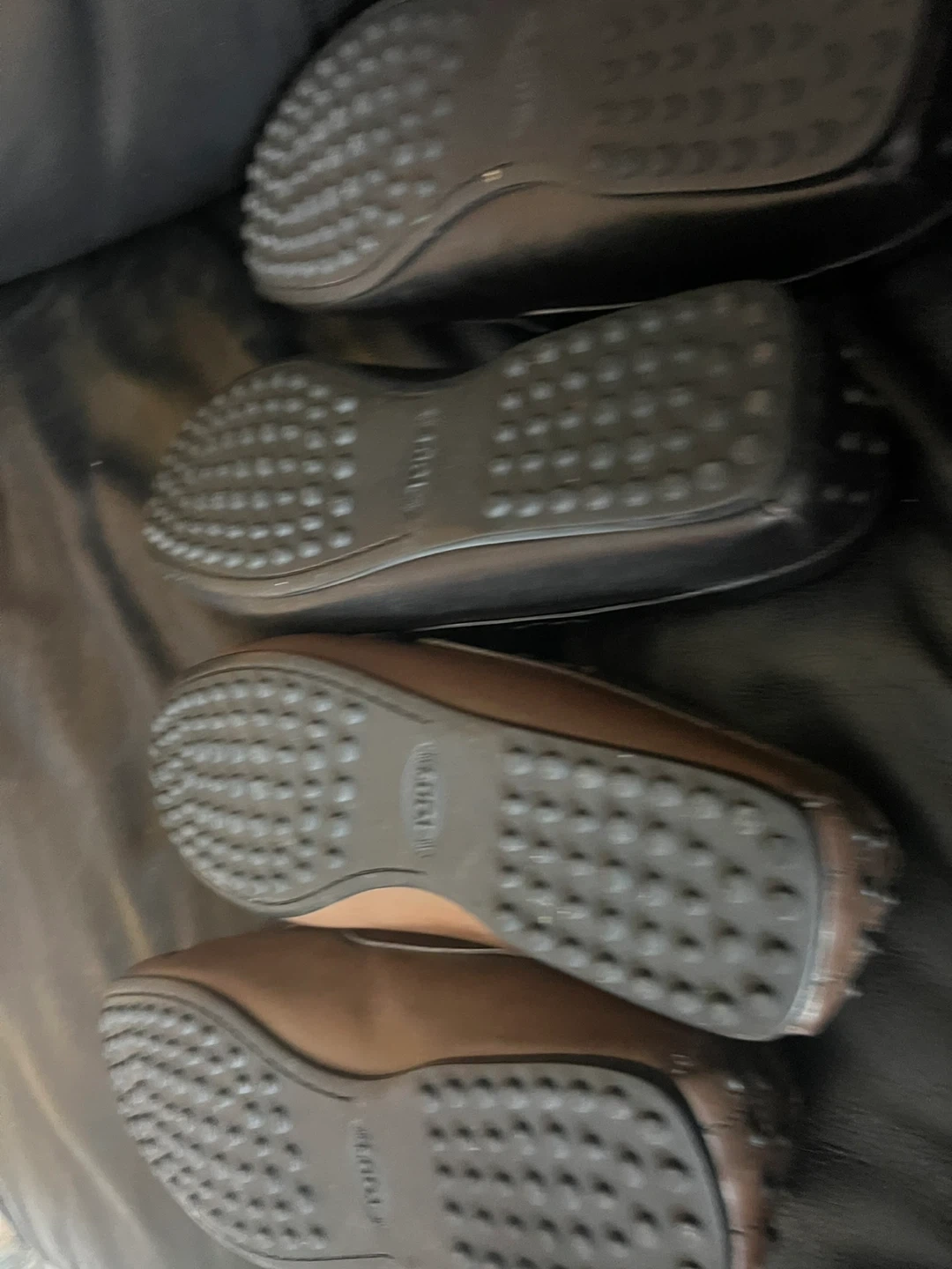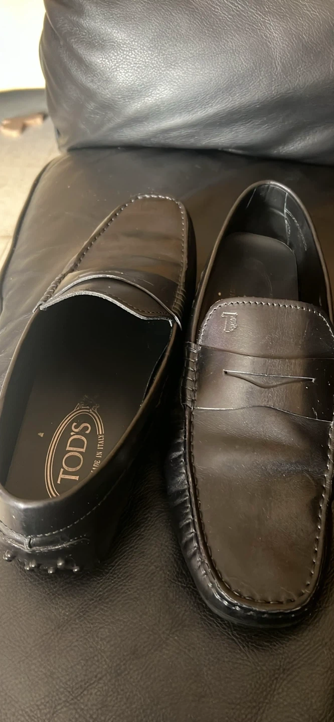 Classic Tod's driving moccasins. Crafted from genuine leather in a timeless design. These shoes are known for their comfort and iconic rubber pebble sole.