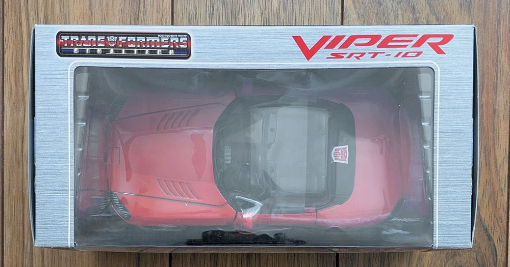 "Lambor", BT-02, from the Transformers Binaltech line, brand new, factory sealed. Modelled after a red Dodge Viper SRT-10 in 1:24 scale.
