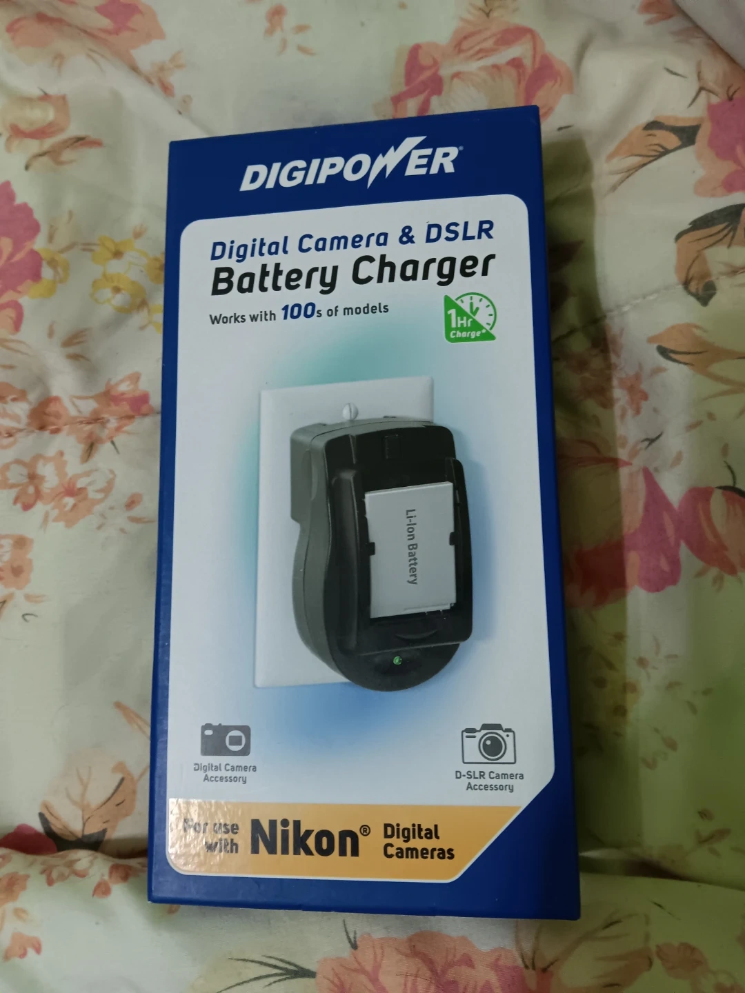 This Digipower battery charger is for digital cameras and DSLRs. It works with hundreds of models and charges batteries in about 1 hour. It's designed for use with Nikon digital cameras.