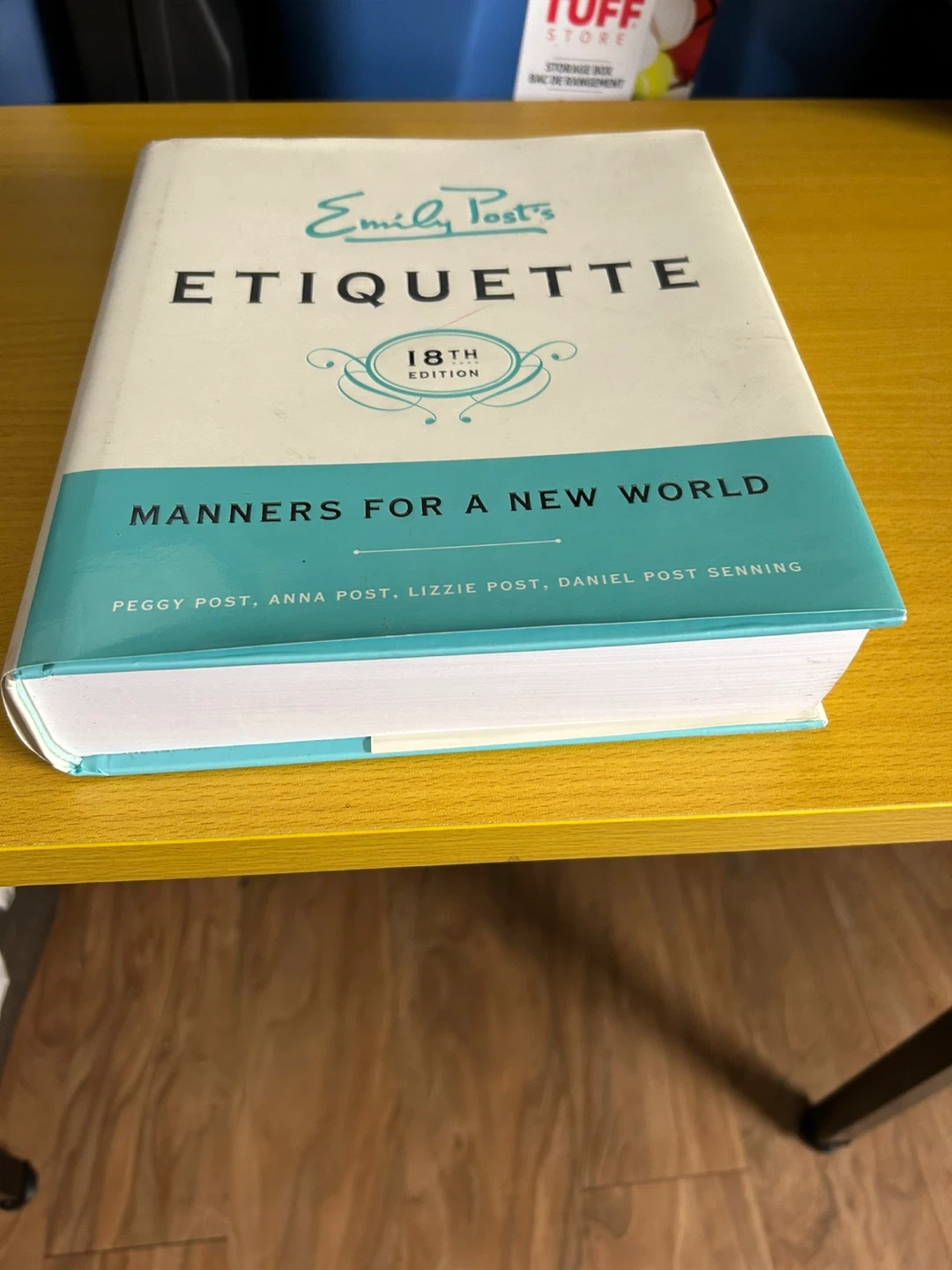 Emily Post's Etiquette, 18th Edition. This book covers manners for a new world. It's authored by Peggy Post, Anna Post, Lizzie Post, and Daniel Post Senning.