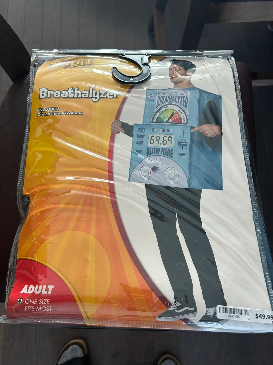 This is a Spirit brand Breathalyzer dimensional costume. It's an adult, one-size-fits-most costume. It includes the dimensional costume.