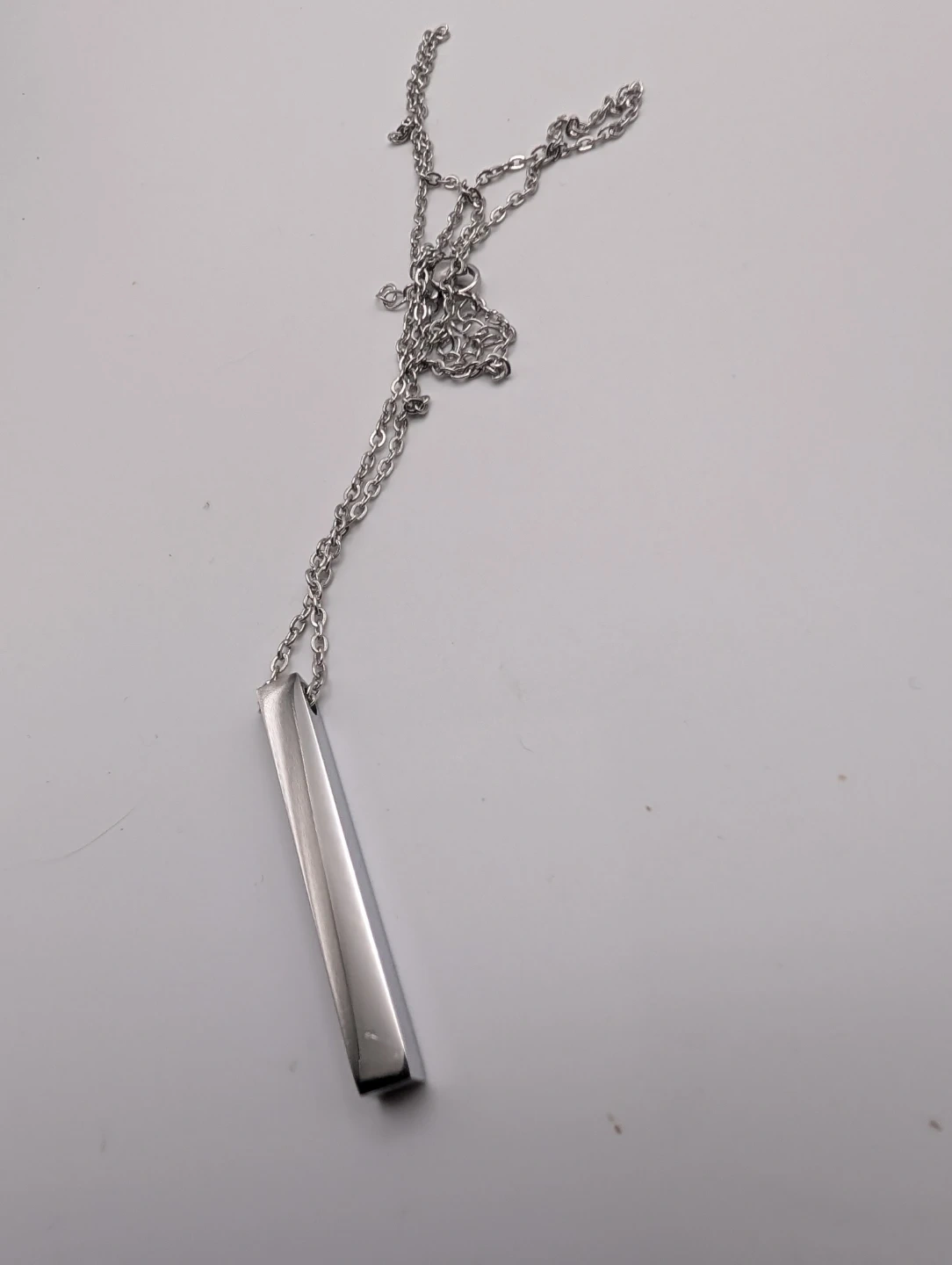 Simple silver bar pendant necklace. It's a lovely accessory for everyday wear.
