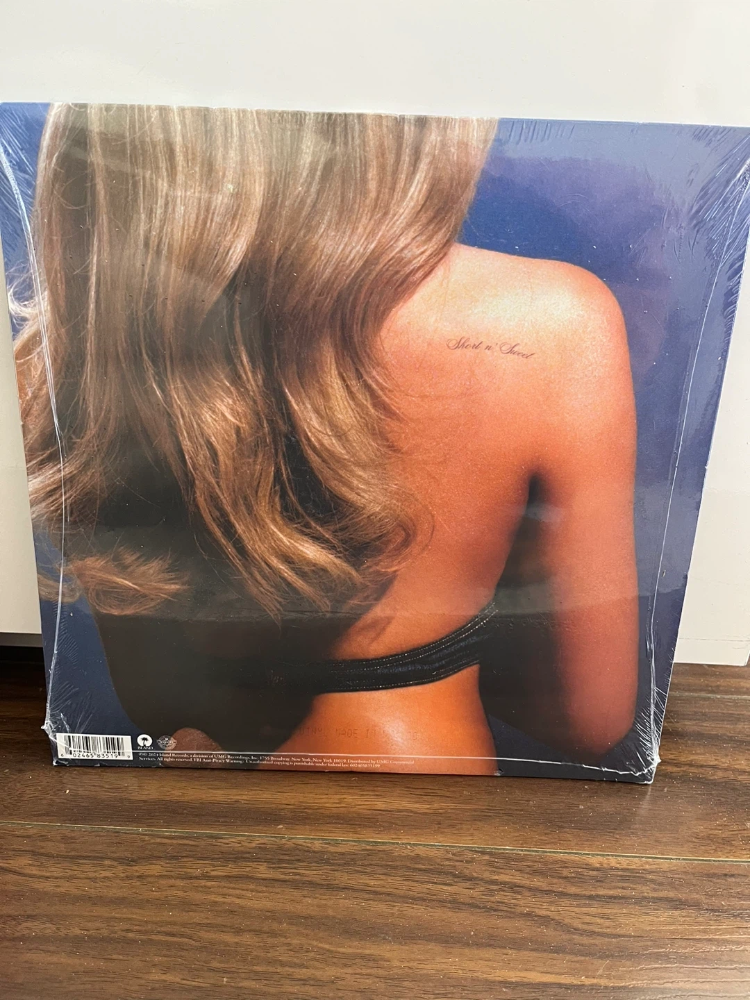This is the "Sweetener" vinyl record. It's still sealed in its original plastic wrap. The album features a Parental Advisory label. Artist Sabrina Carpenter.