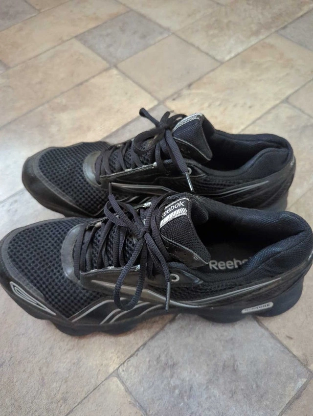 Get ready to run in these Reebok Runtime men's running shoes, size 12. They're in good used condition and ready for a new owner. Brand: Reebok, Model: Runtime, Size: Men's 12, Colour: Black. Asking $20. If the ad is up, the shoes are still available.