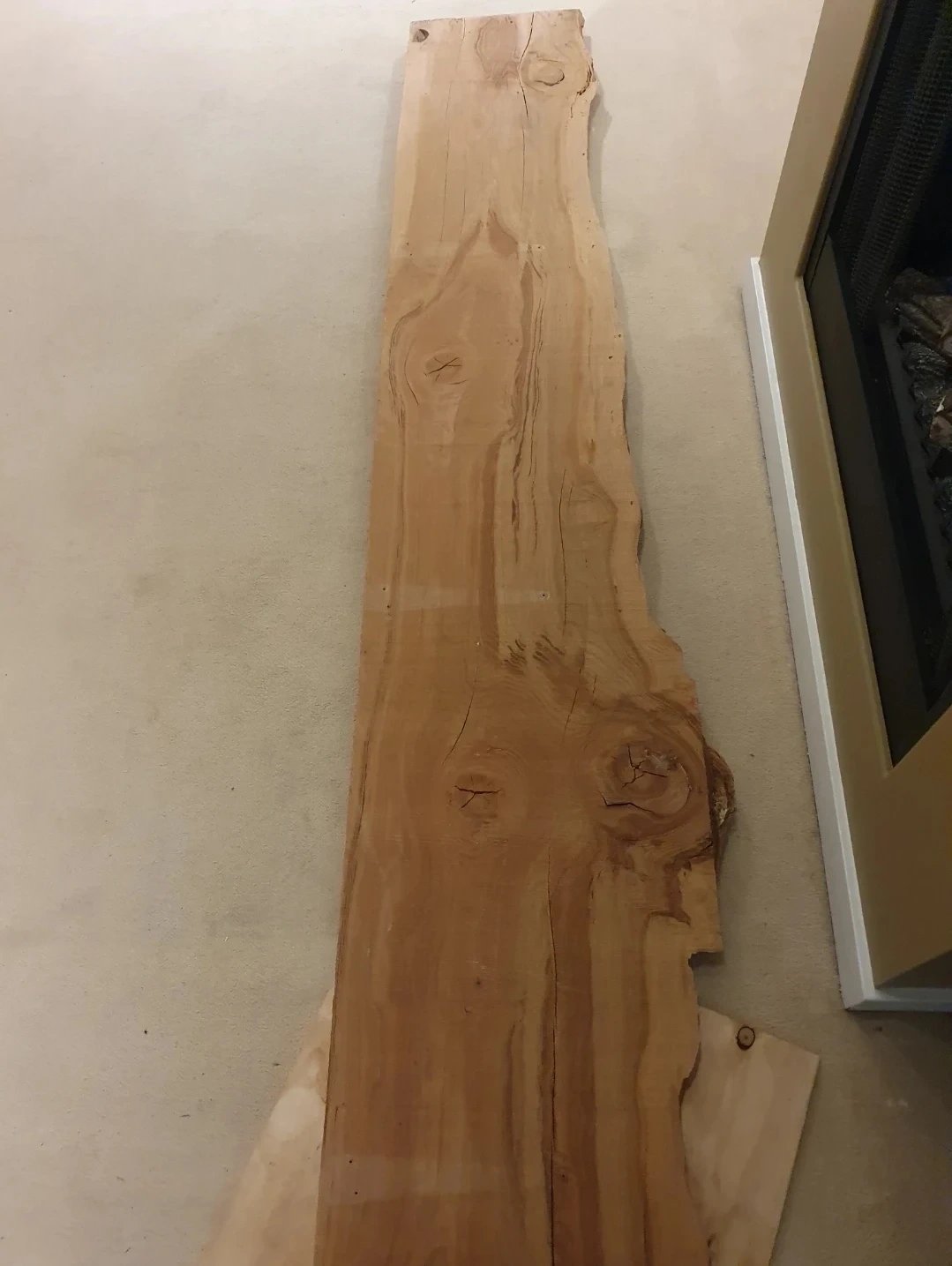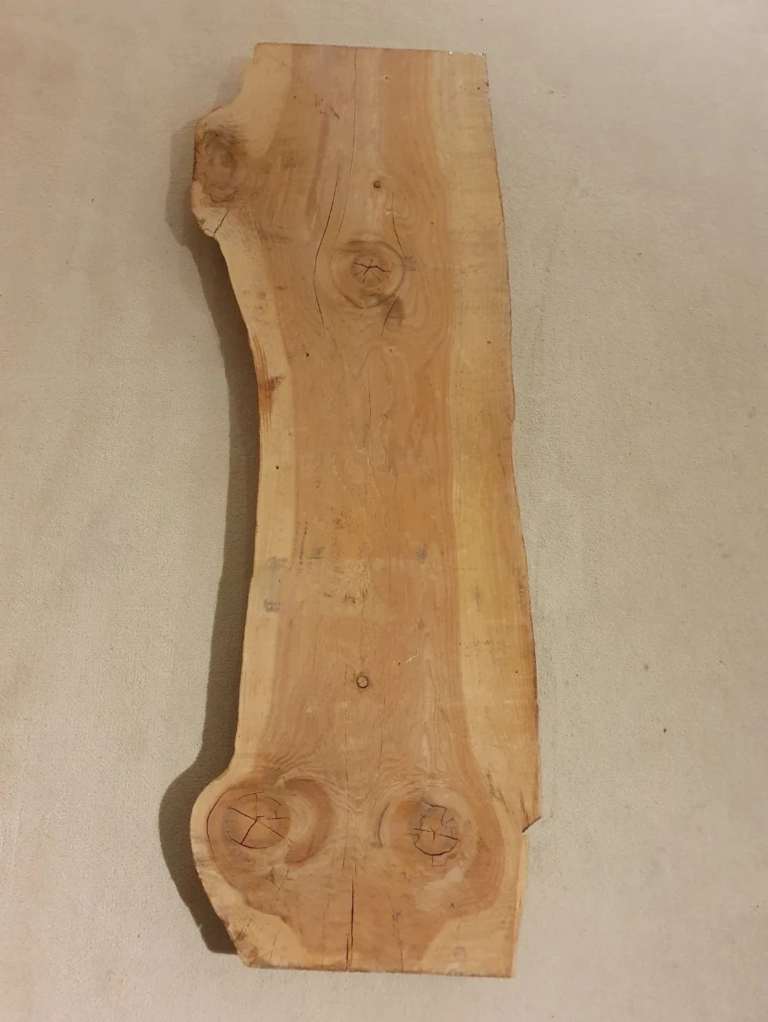 Unique live edge wood slab, showing natural grain patterns and knots. Wood material. Rustic decor!