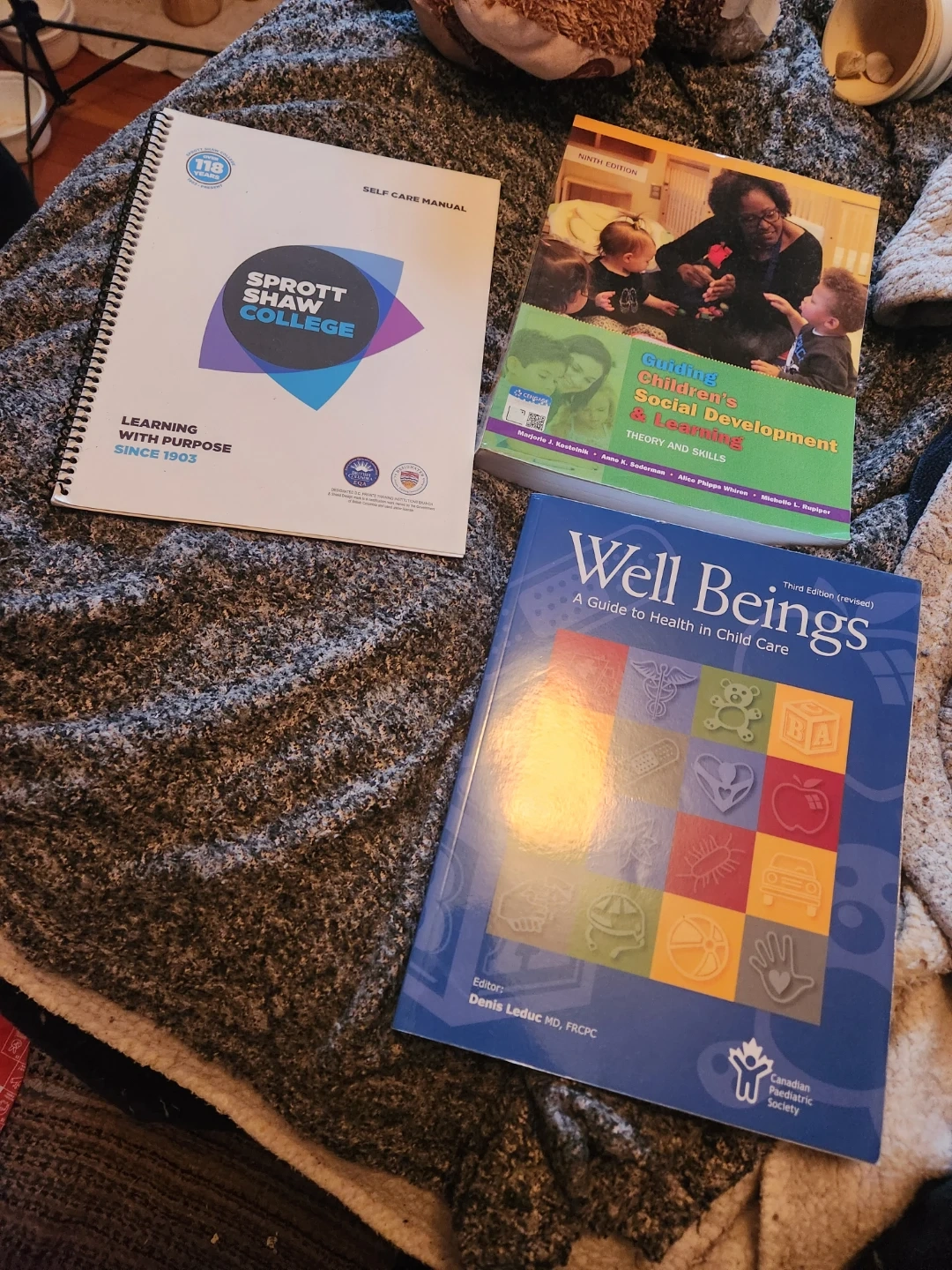 This bundle includes textbooks on Music and Movement, Positive Child Guidance, and Sprott Shaw College Self Care Manual. Also included are books on Outdoor and Nature Play, Early Childhood Mathematics, Art & Creative Development, Essentials of Early Childhood Education, Experiences in Language Arts, and Well Beings: A Guide to Health in Child Care. Perfect for students in early childhood education programs!