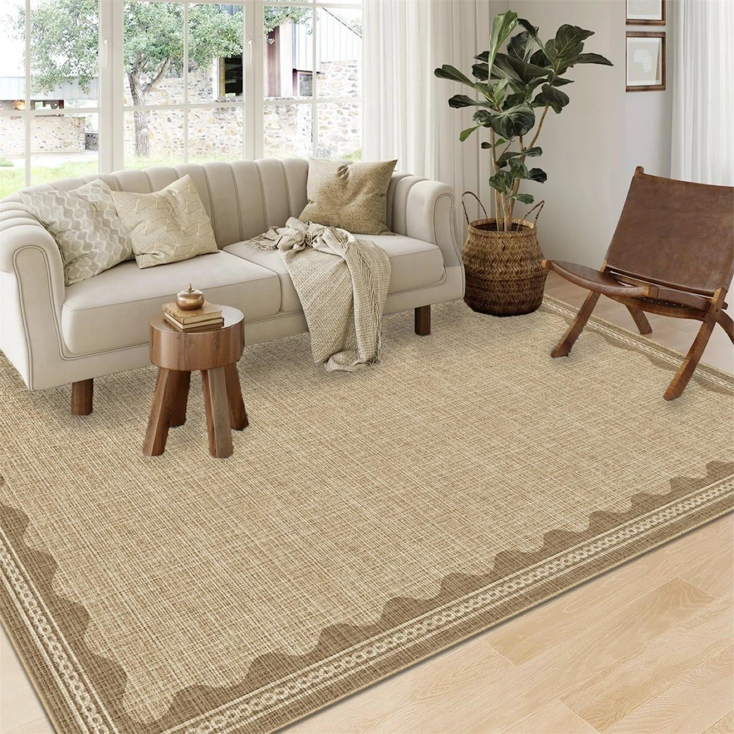 Garvee Modern Jute 9x12 Scalloped Washable Area Rugs for Living Room, Solid Rug for Bedroom, Non Slip Throw Mat With Rubber Back, Soft Dorm Nursery Carpet for Dining Room
