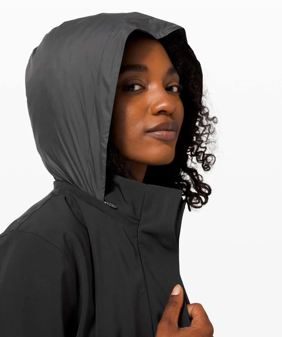 This sleek water-repellent coat is built for breathability. A perforated liner lets air flow when your day heats up.
