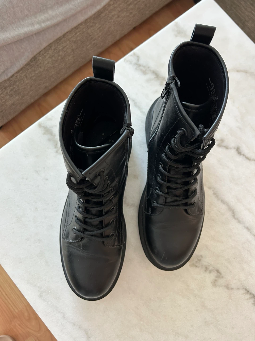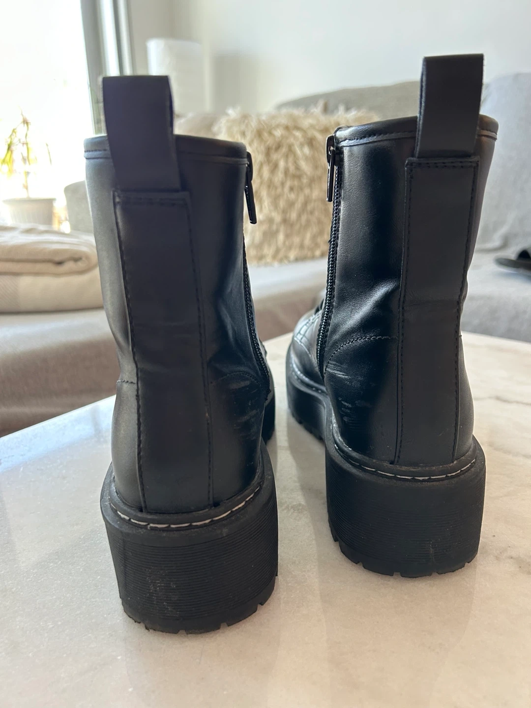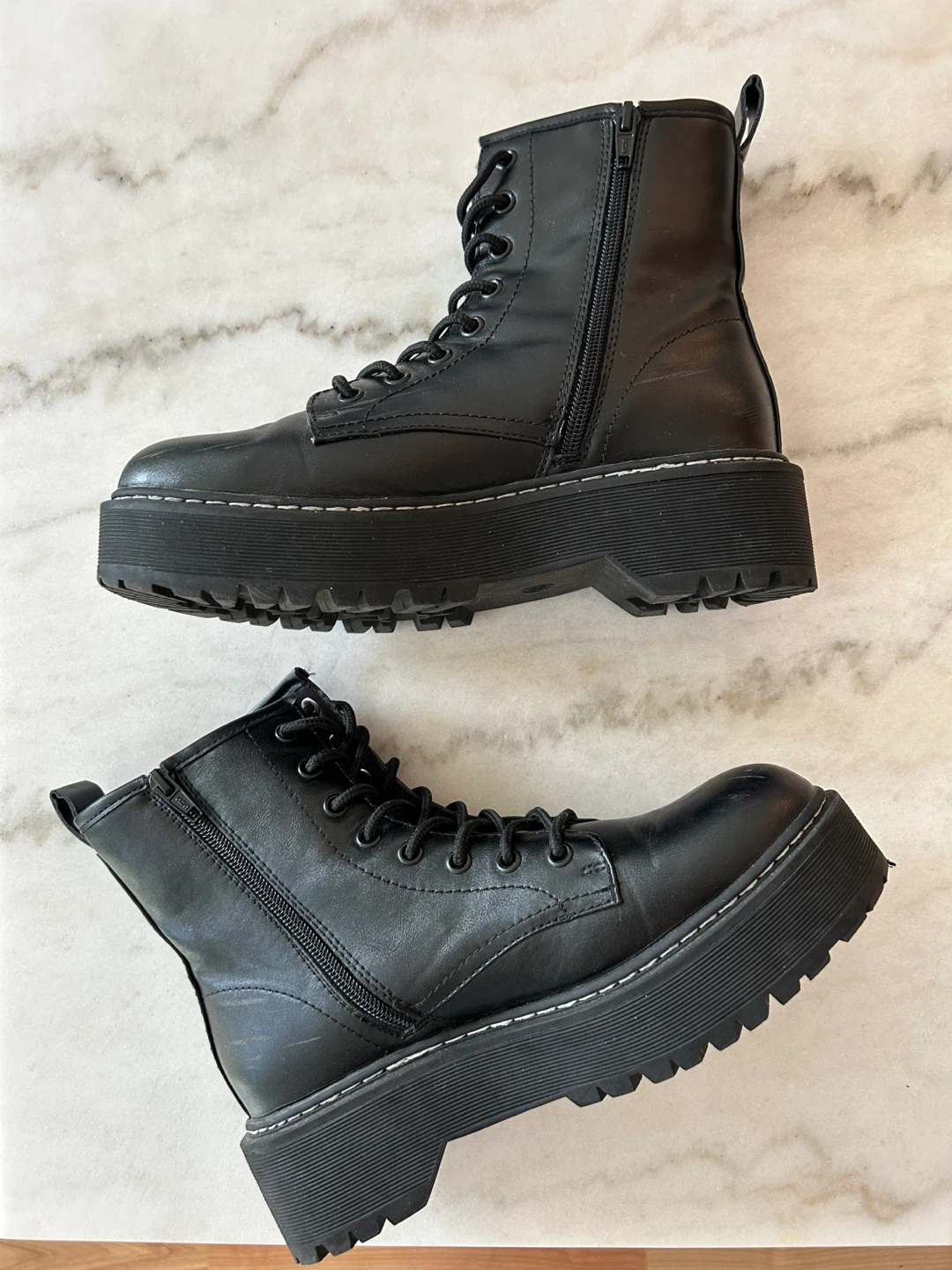 Classic black combat boots with a chunky platform sole. IN GREAT CONDITION (like new, worn once).