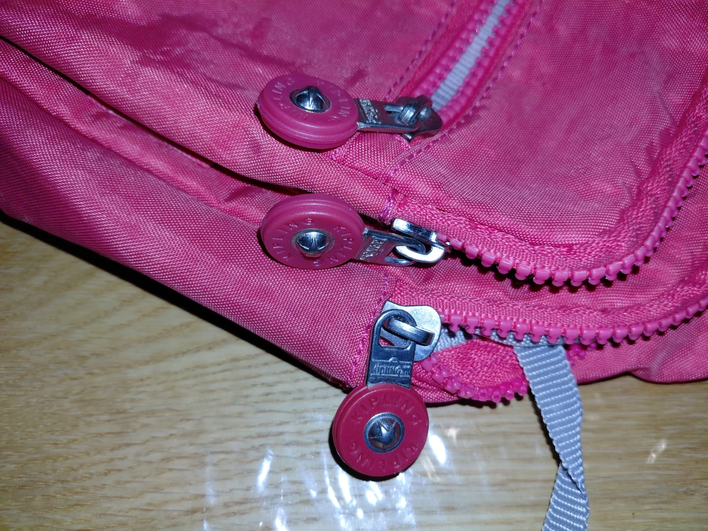 This is a Kipling pink sling mini backpack. It's made of nylon and features multiple zippered compartments for youy essencials. It comes with the classic Kipling monkey keychain!
