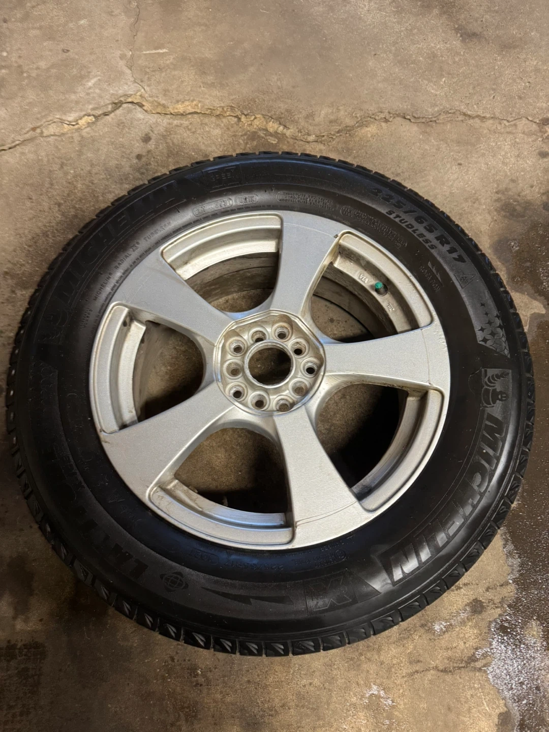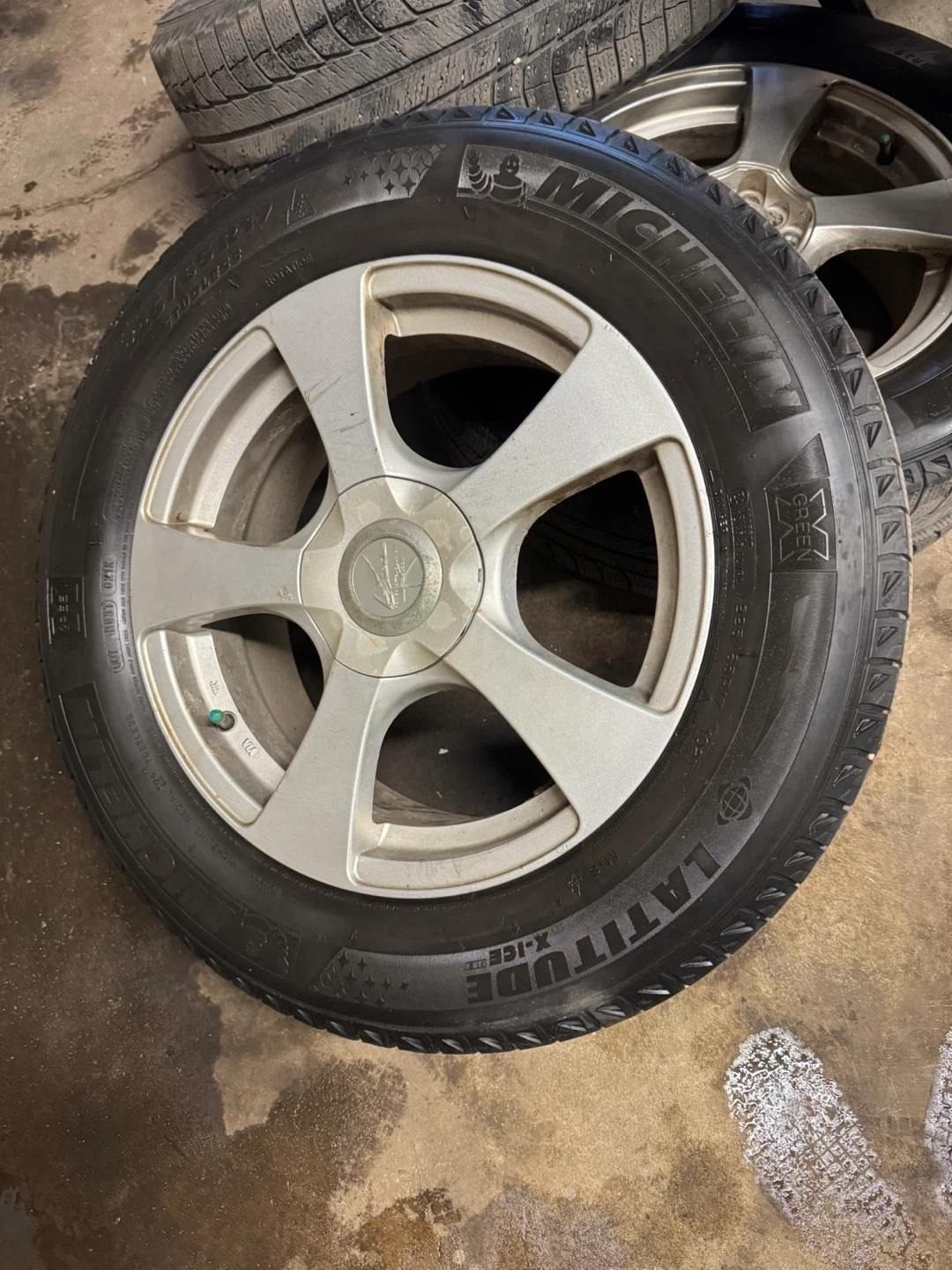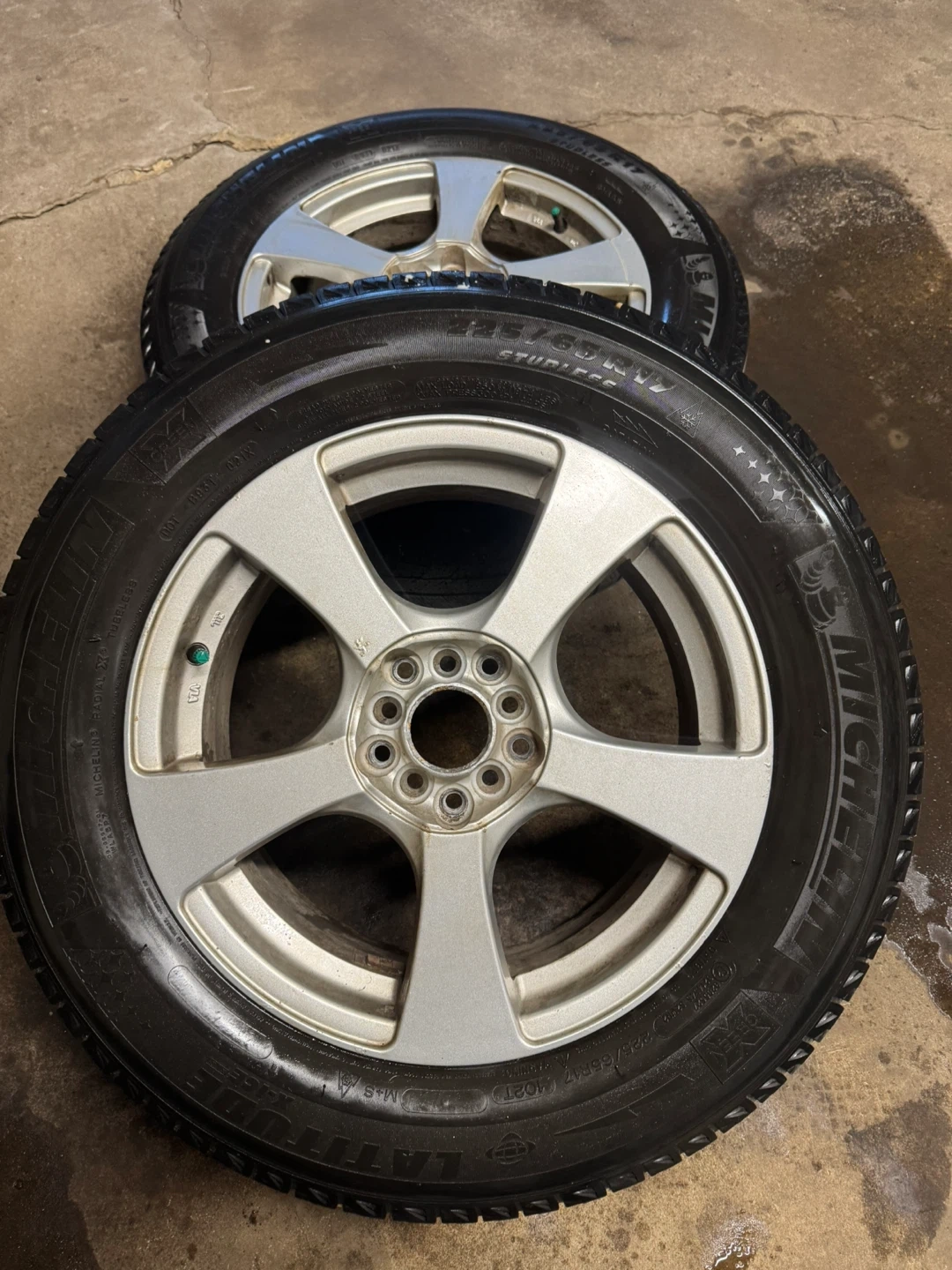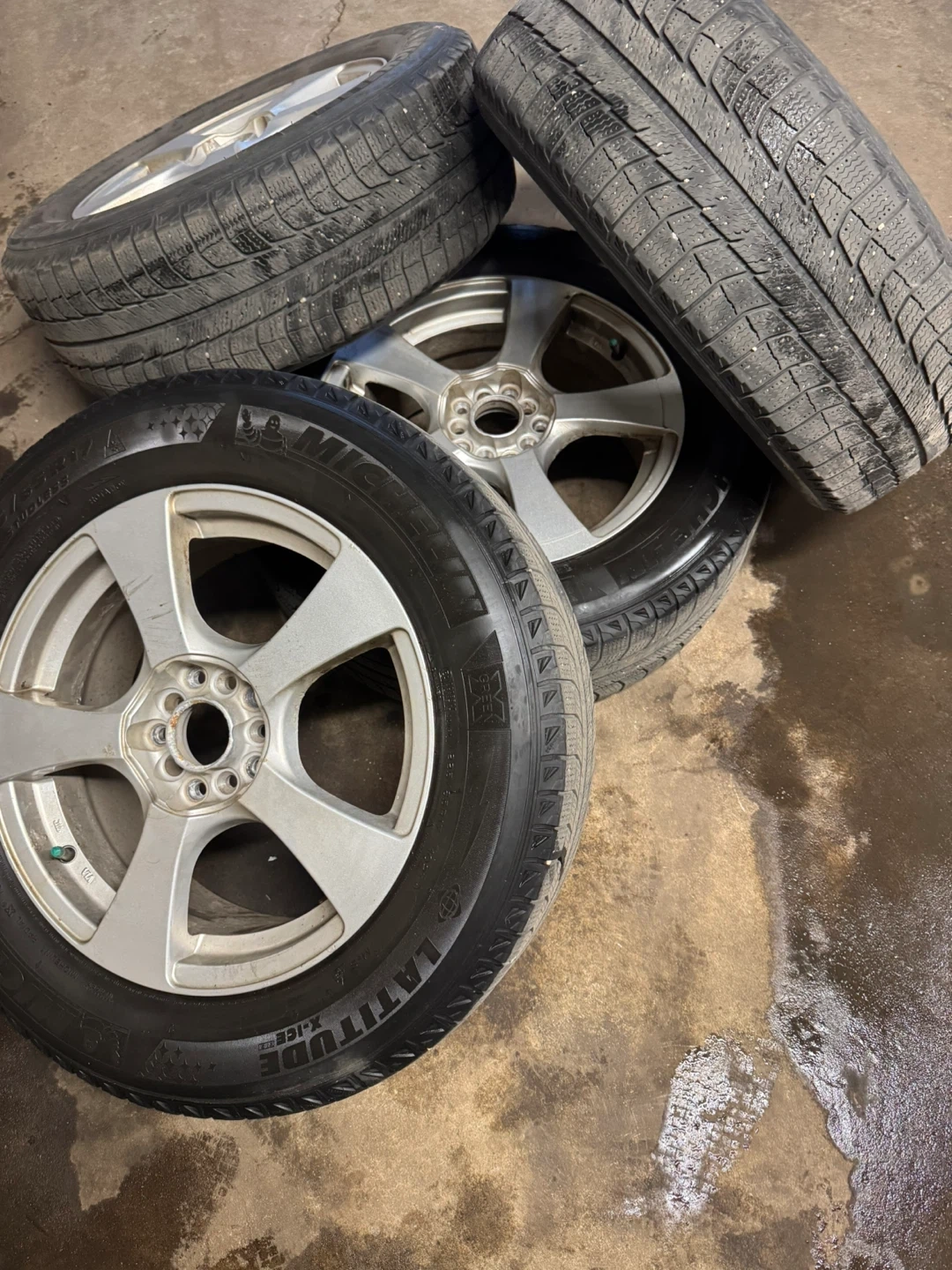 Four Michelin Latitude X-Ice snow tires mounted on alloy rims. Tires are size 225/65R17. Pattern 5x114.3 and 5x120 ,take of from Toyota rav4
