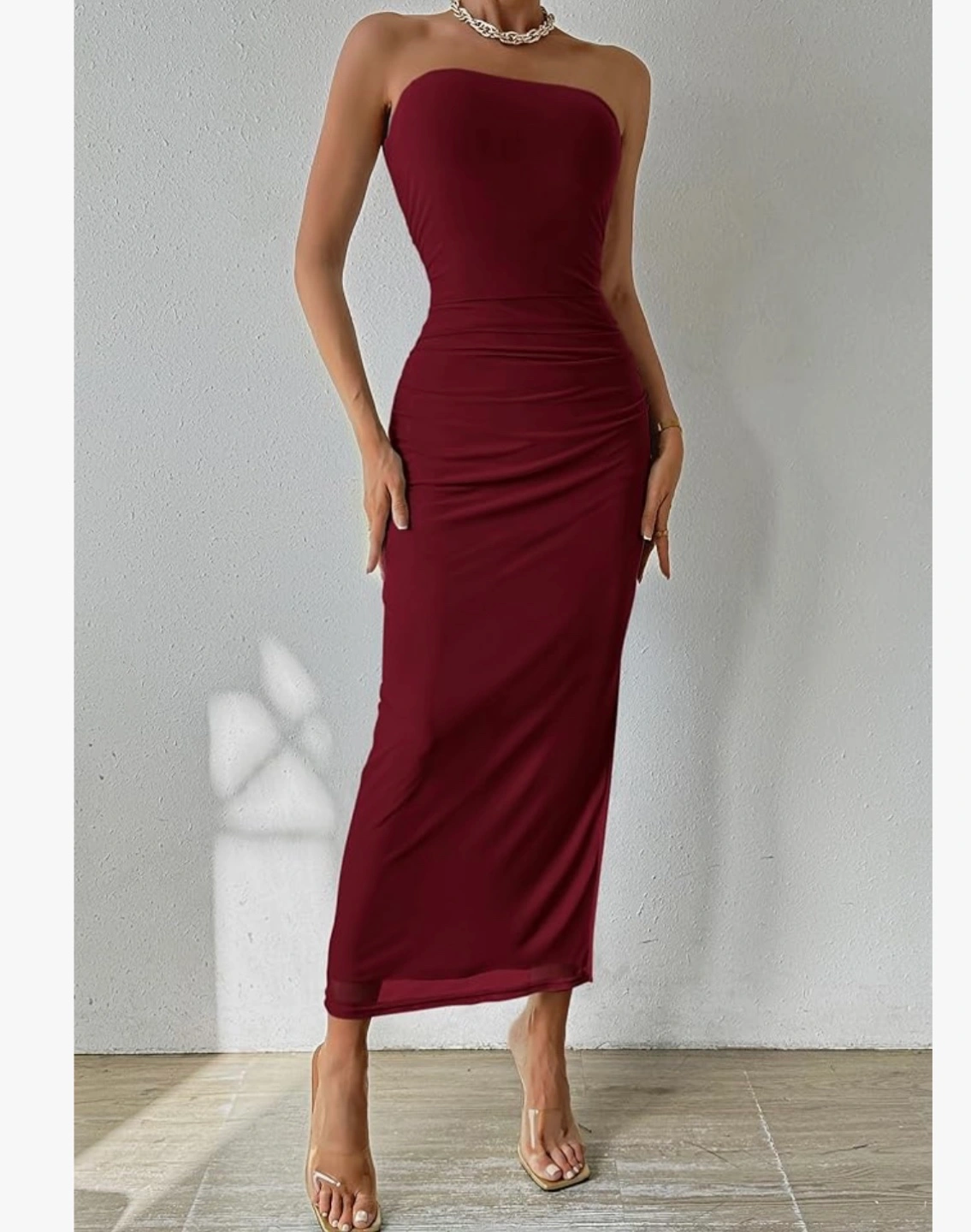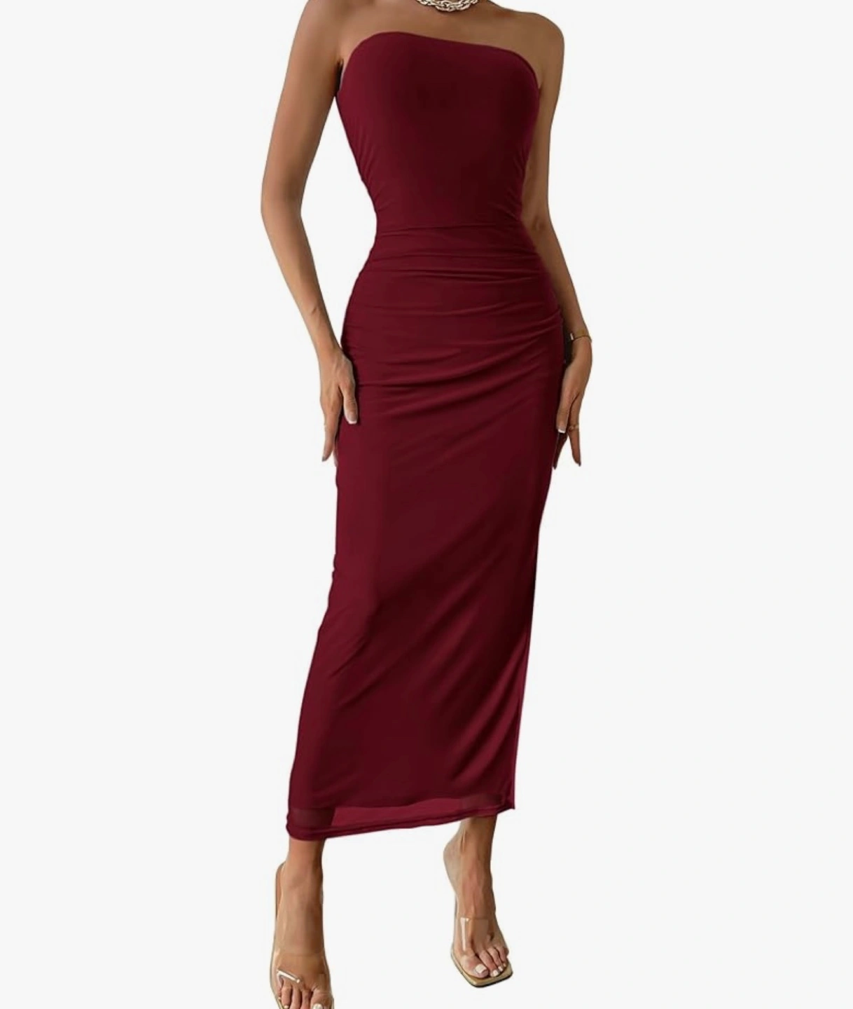 Pretty garden small Maroon Strapless Ruched Bodycon Maxi Dress