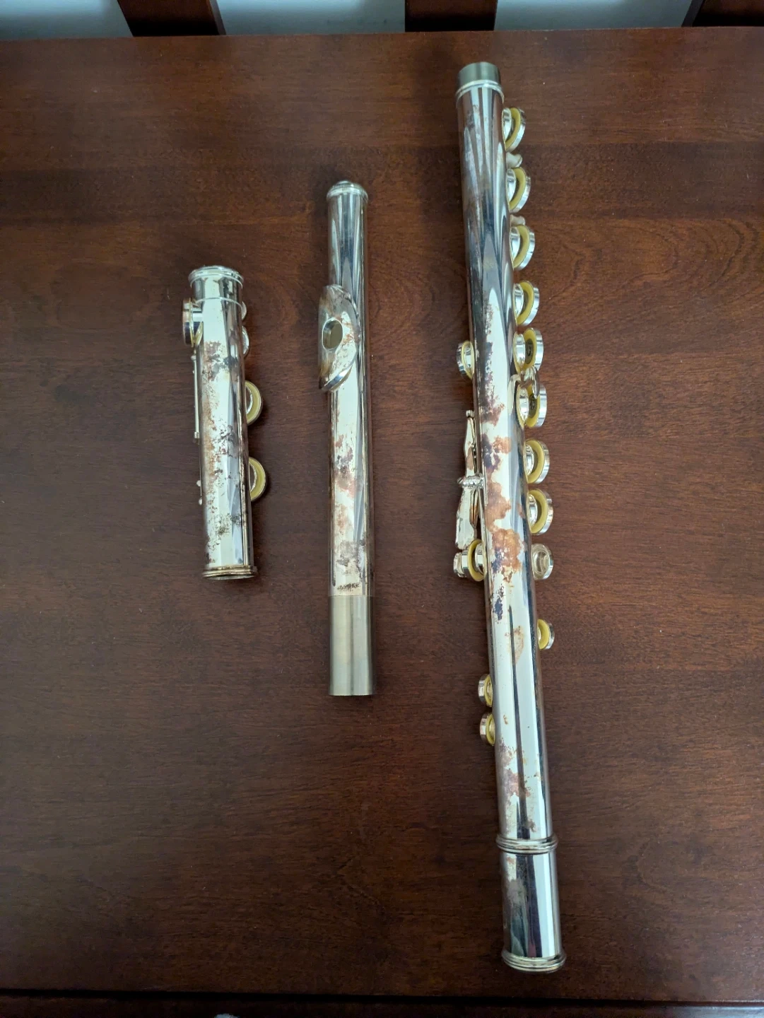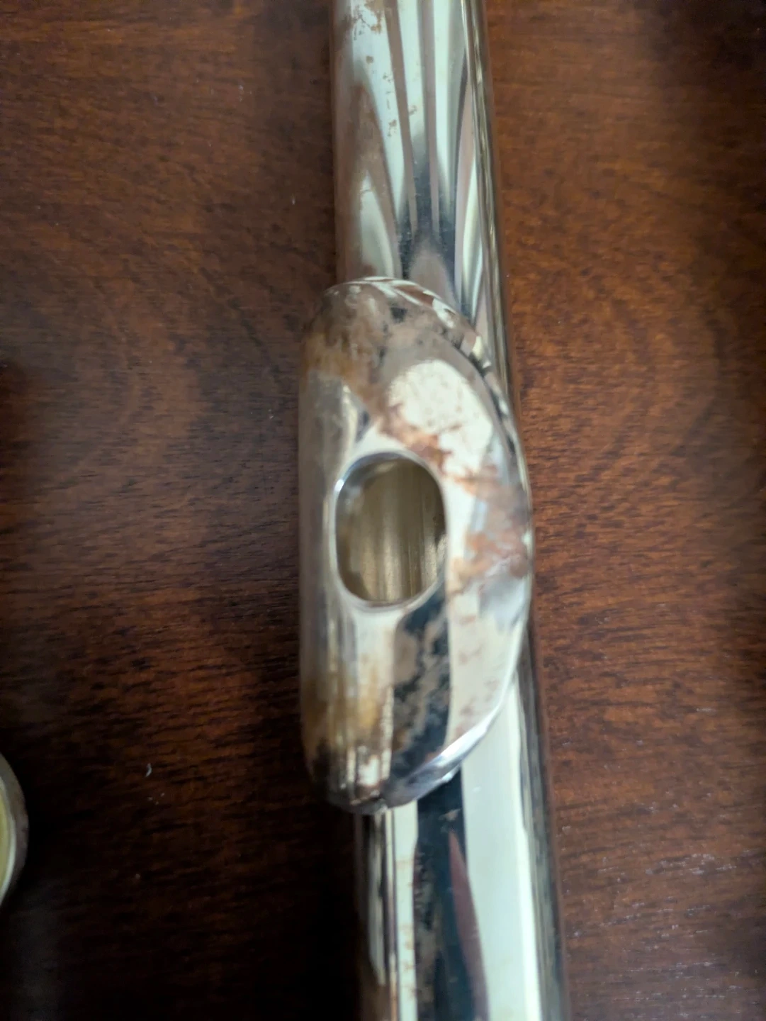 The flute was bought in 2020 end of January for my grade 7 child then school was all closed in February due to COVID. So, the flute was never used. The tarnish was from storage all these years.