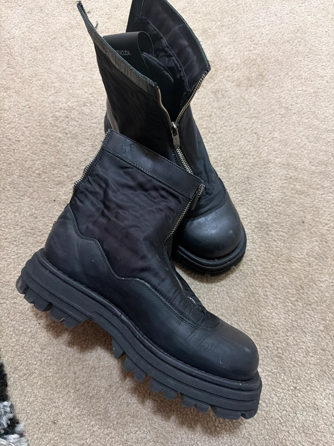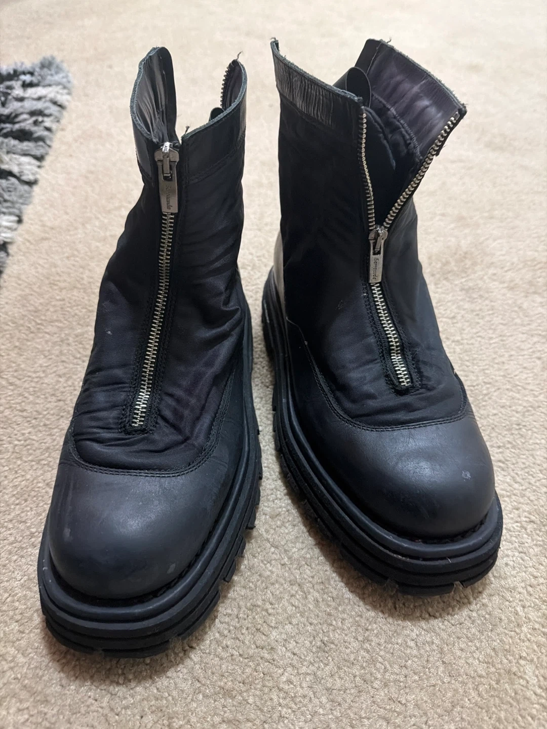 Barracuda black zip boots. These boots are size 40.5 and made in Italy. They feature a front zipper closure and a rugged sole. Perfect for any urban explorer!
