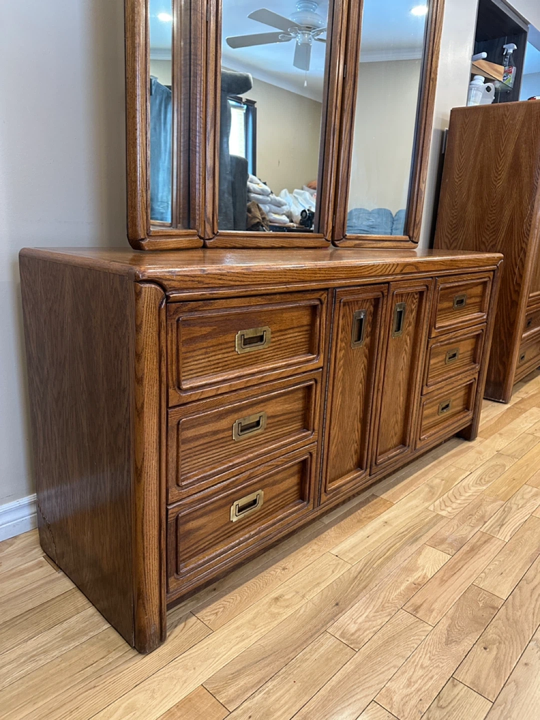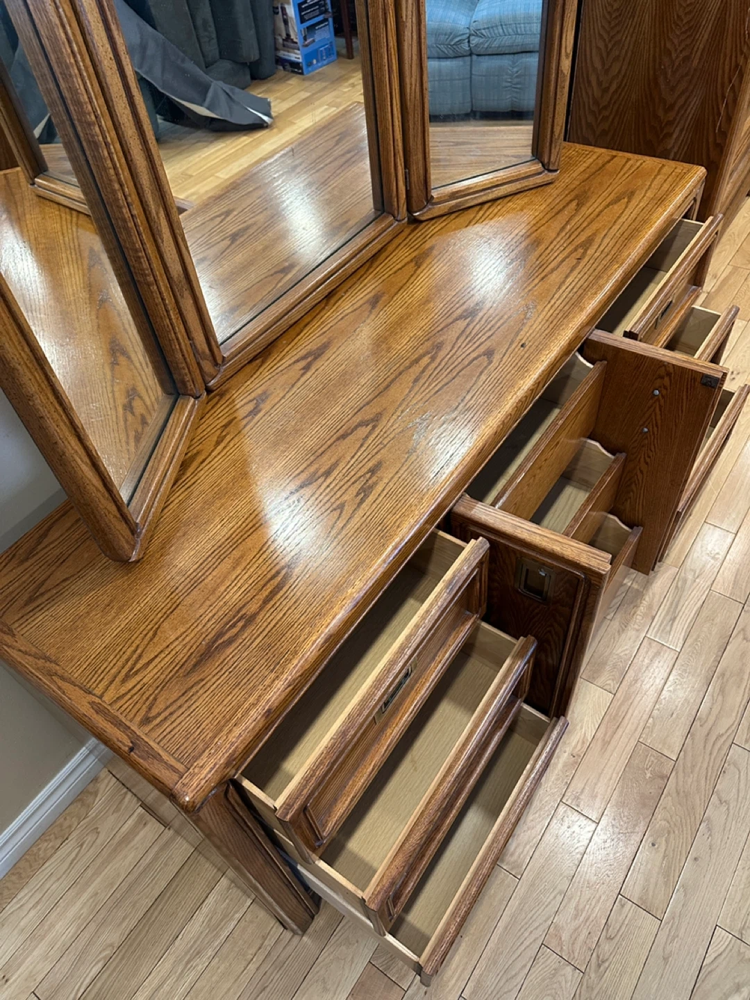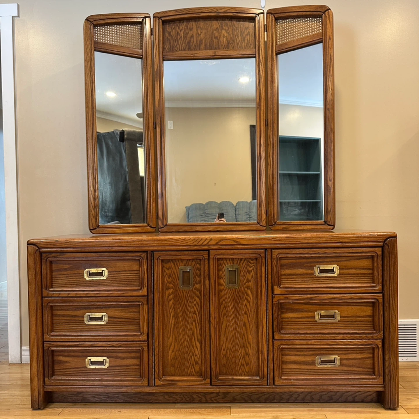 Vintage Oak Dresser w/ Triple Mirror (CAN DELIVER)
