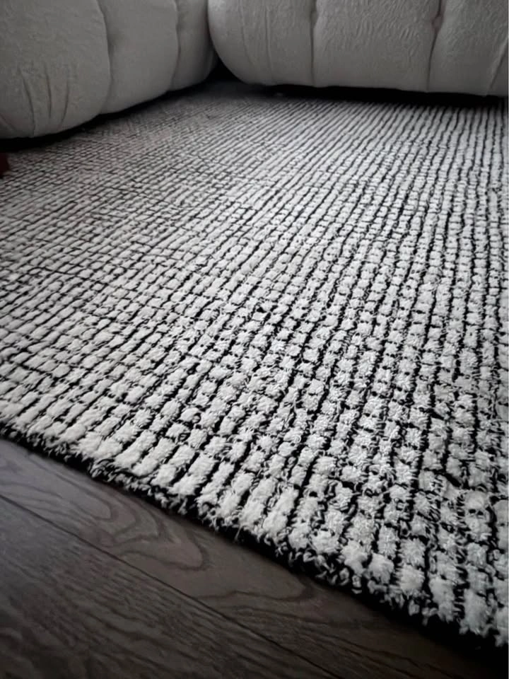 Modern, minimal abstract rug from Safavieh in a neutral ivory and black weave. Subtle texture with a soft, understated pattern that works beautifully in contemporary, minimalist, or modern spaces. Looks great with black, white, wood, or neutral interiors. Brand: Safavieh, Style: Abstract / Modern, Color: Ivory / Black, Size: 6’ x 9’. Condition: Excellent / like new (no stains, damage, or odors). From a smoke-free, pet-free home. Perfect for a living room, bedroom, or office. Originally purchased for over $500. 60% Viscose, 40% Wool. Pickup only. Serious inquiries welcome. Downtown Toronto.