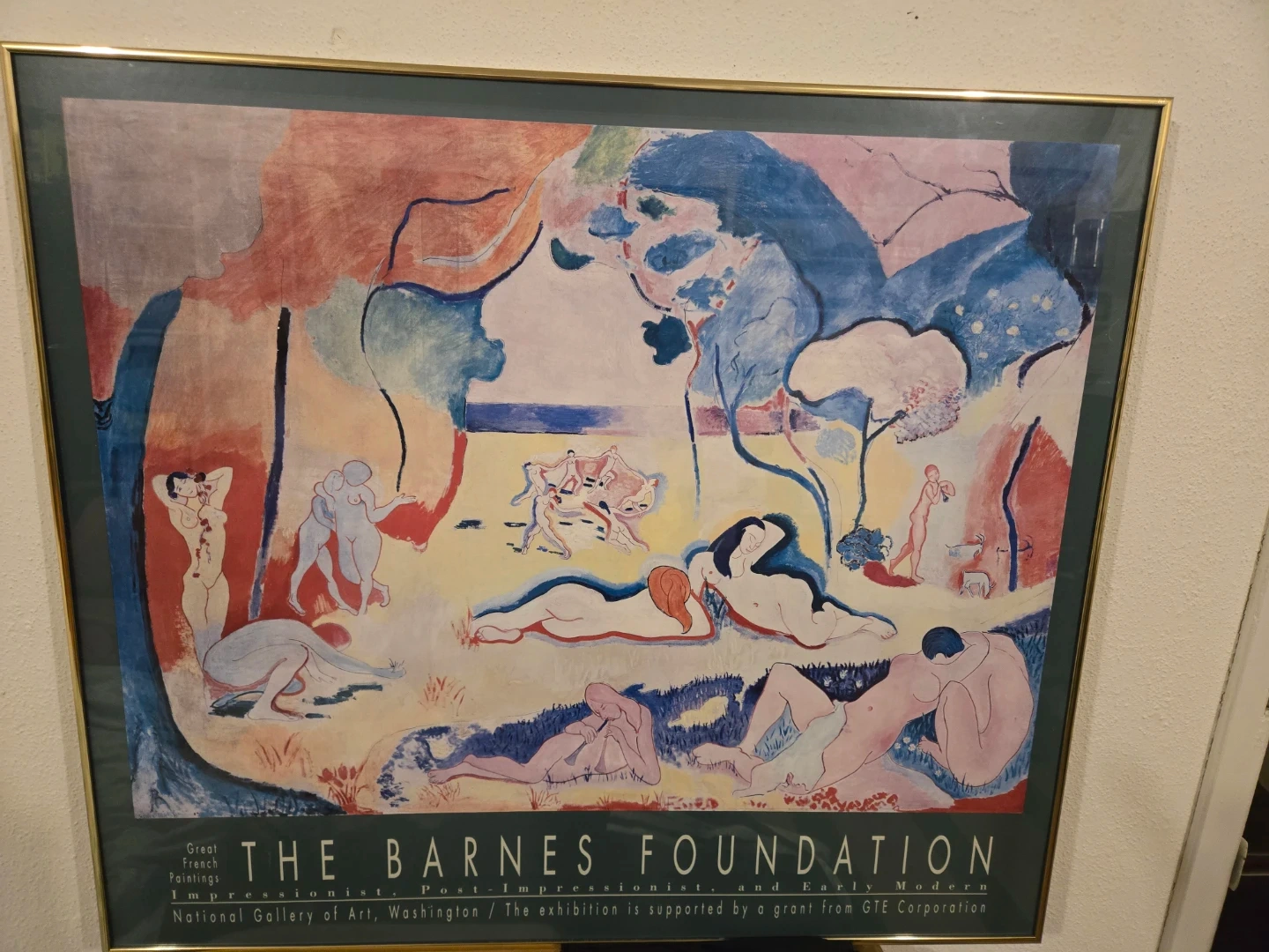 Framed art print featuring 'Great French Paintings' from The Barnes Foundation. It showcases Impressionist, Post-Impressionist, and Early Modern works. The print is from the National Gallery of Art, Washington.