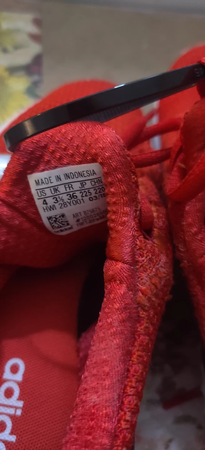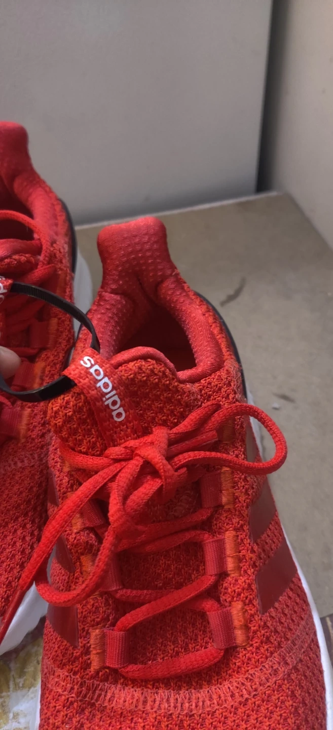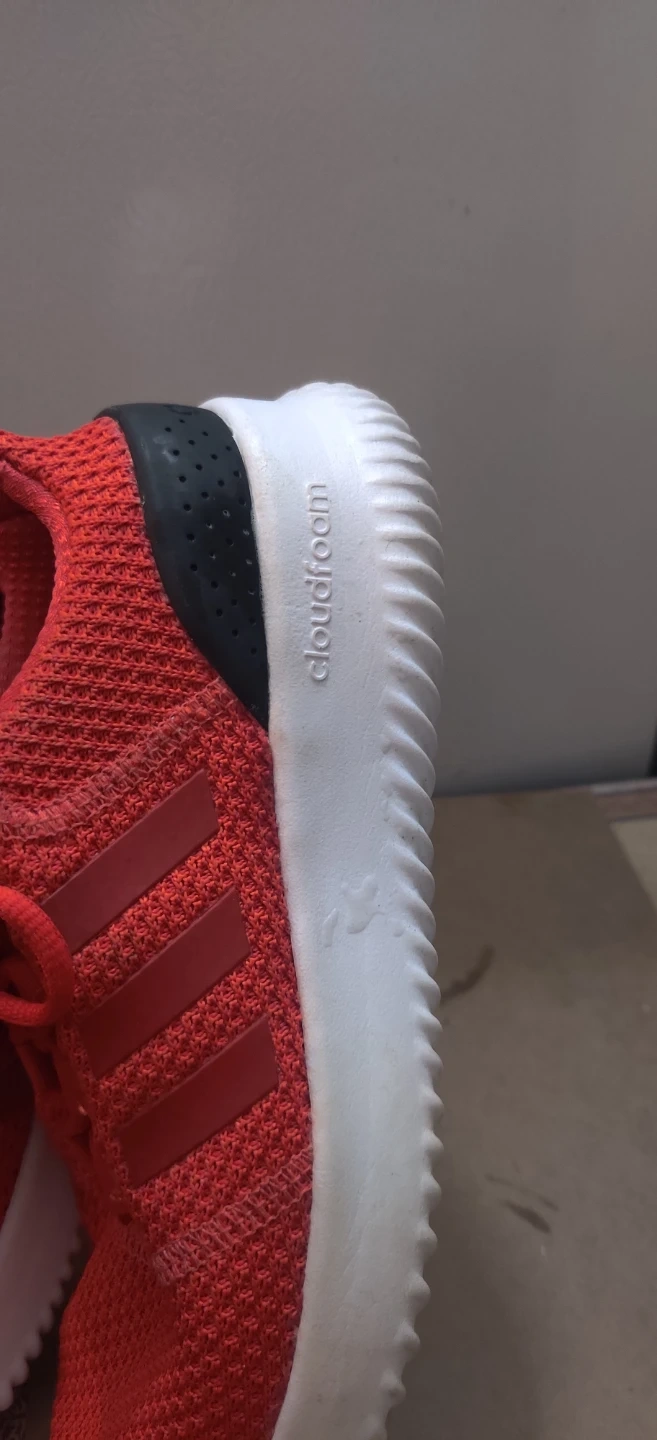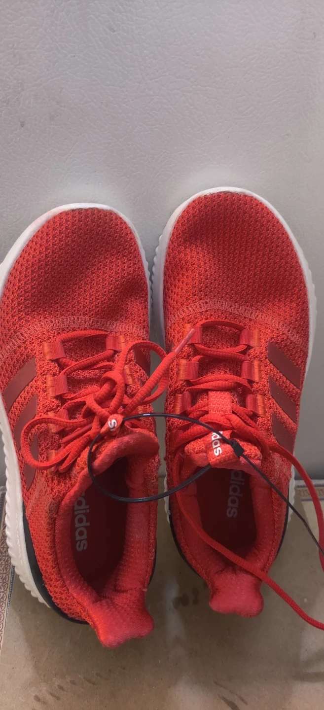 Adidas running shoes feature red knit uppers and white Cloudfoam soles. Size US 4. Perfect for everyday wear or light athletic activities!will fit 6-8 years .Maybe some 5 year olds.Worn only a few times