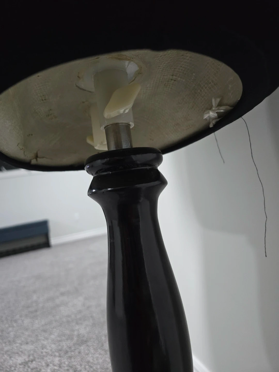 This is a black fabric dress form mannequin with a wooden base. It's ideal for displaying clothing. The base is black wood and has some wear.