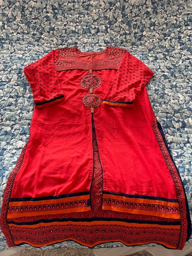 Brighten up your wardrobe with this vibrant Kameez. Condition: Used - Like new. Size: Medium (8-10). For Sale By: Owner. Curbside pick up: Yes. Cash accepted: Yes.