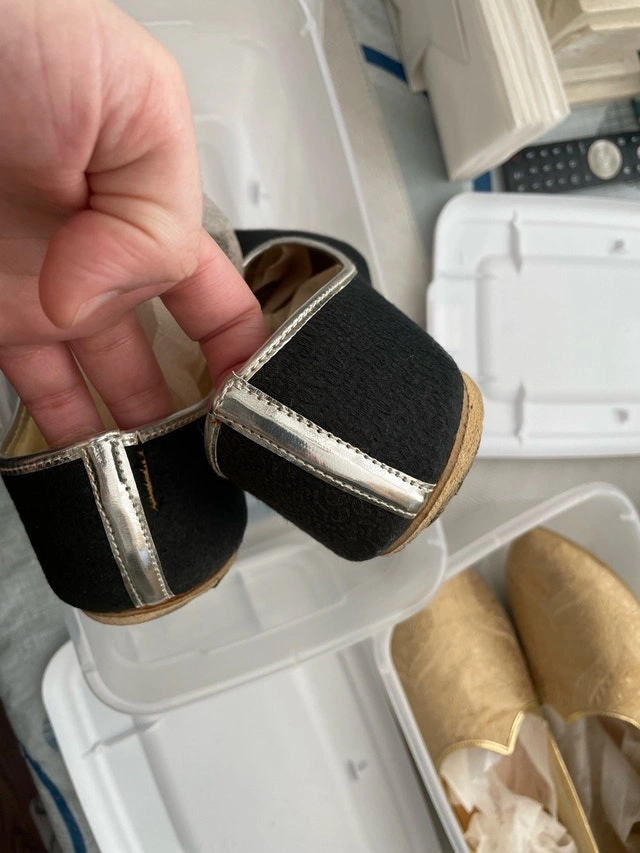 Step into style with these gently worn traditional shoes, perfect for adding a touch of elegance to any outfit. These shoes have been previously loved, but are still in great condition. The shoes are black with silver accents. They are perfect for any special occasion! As a reminder, if the ad is still up, the shoes are still available!