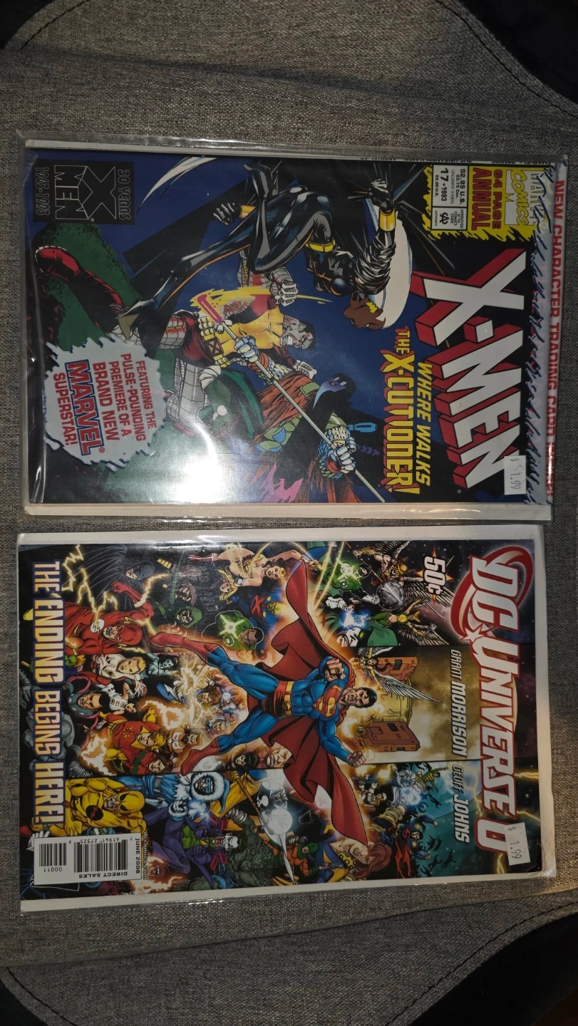 Two comic books included: DC Universe "The Ending Begins Here!" and X-Men Annual #17 "Where Walks The X-cutioner!".