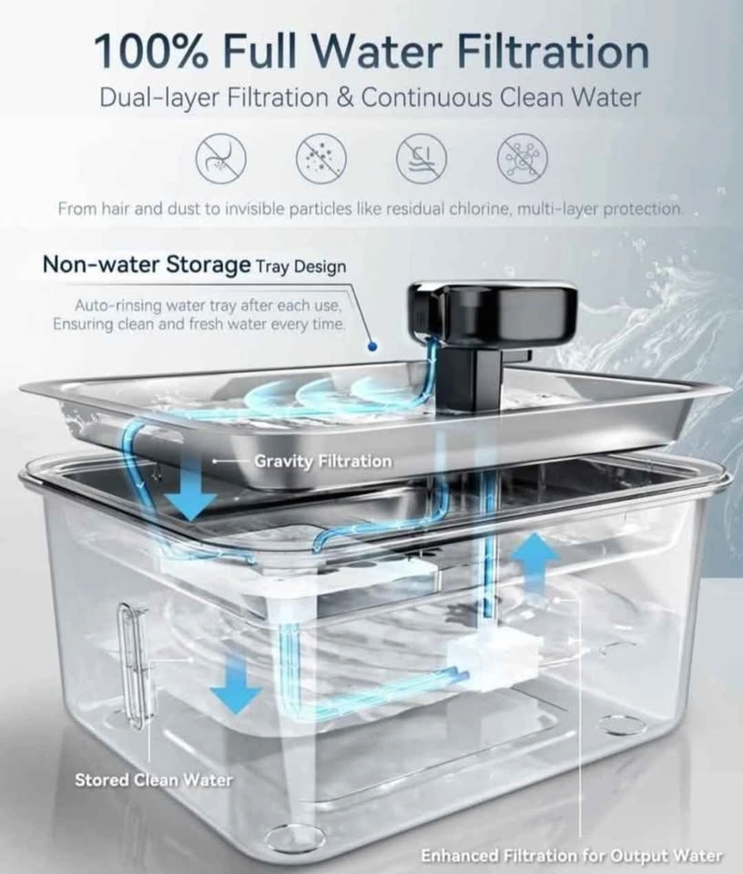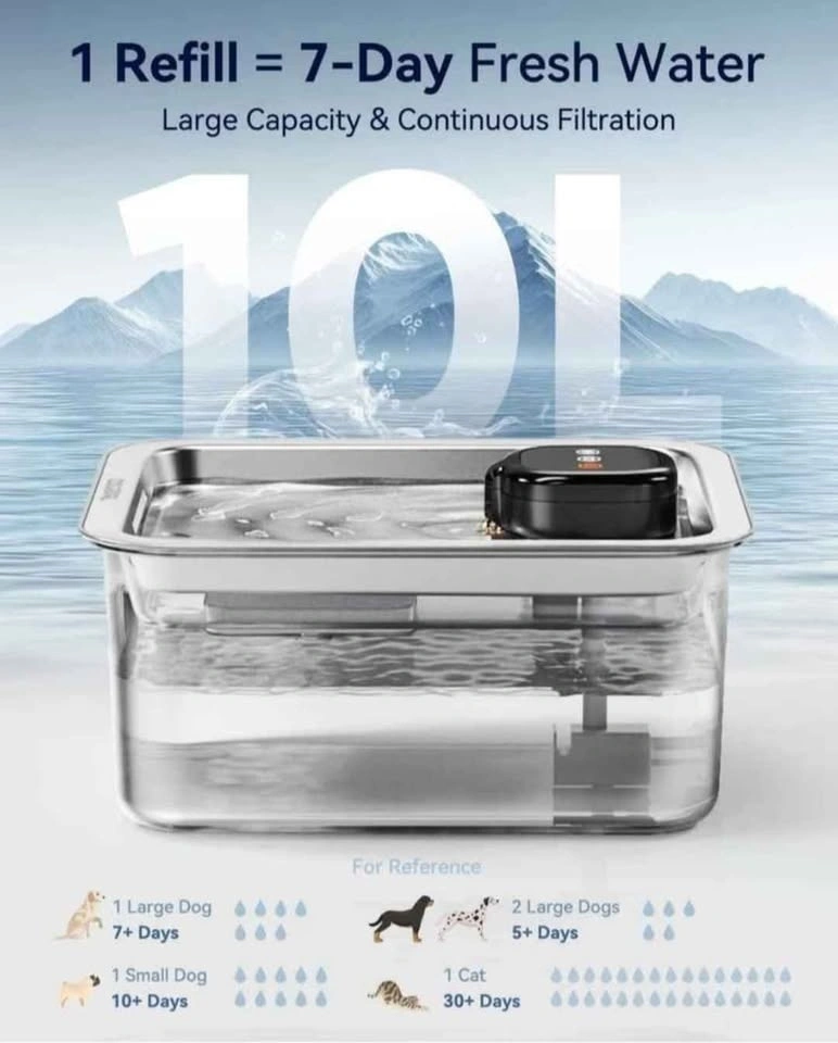 Brand new pet water fountain, stainless steel, 10L/2.6Gal capacity. Automatic smart cat water fountain for drinking. Indoor large metal pet waterer with 2 filters. Still in its original package. Price negotiable for fastest pickup. Can be delivered based on my availability.
