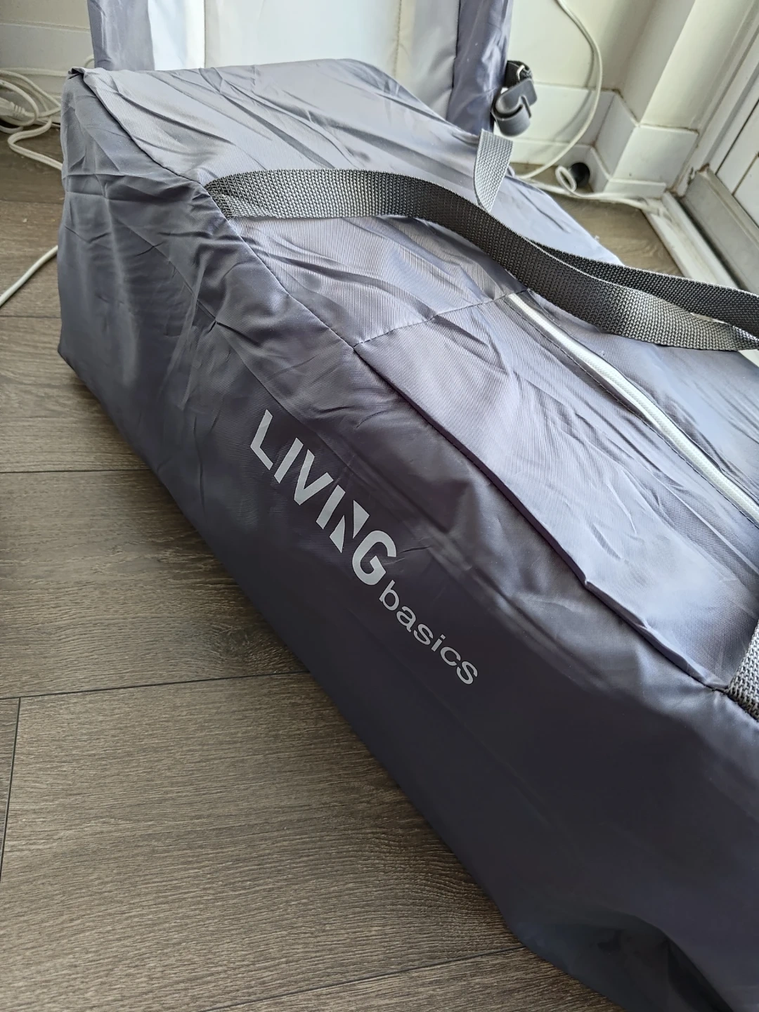 This LIVINGbasics playard comes with a bassinet and changing table attachments. It's easy to fold and includes a carrying bag. Weight capacity for changing table is 17.6 lbs, bassinet 19.8 lbs, and playard 33 lbs.