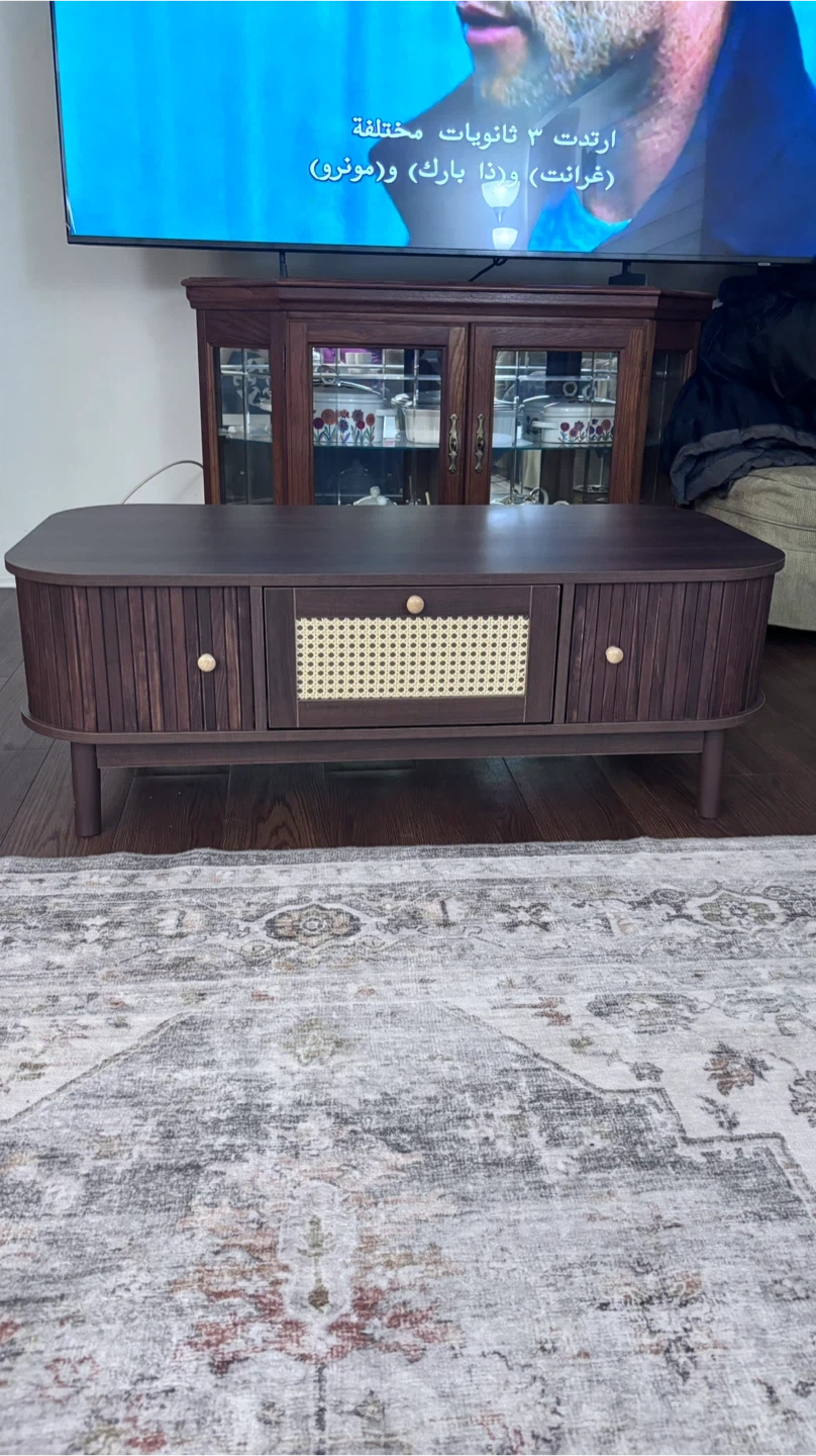 These are 2 cute dark wood matching TV stand and coffee table, they are practically brand new.