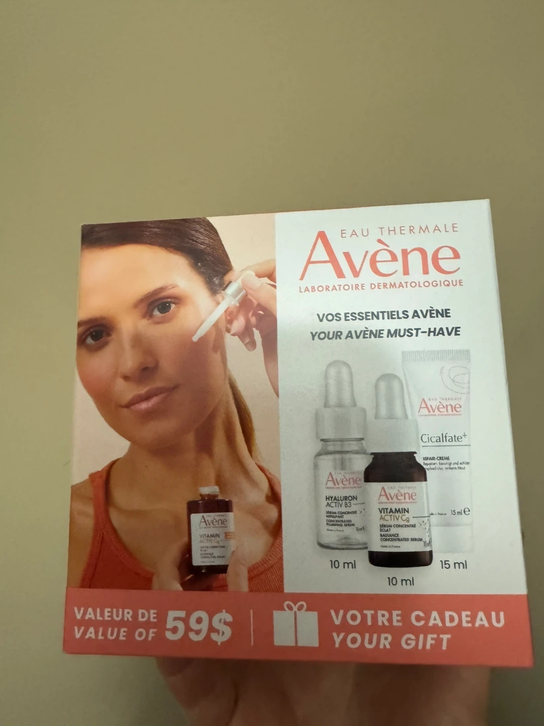 This Avène set includes Hyaluron Activ B3 concentrated serum (10ml) and Vitamin C concentrated serum (10ml), plus Cicalfate+ Repair Cream (15ml). It's your essential Avène skincare kit!