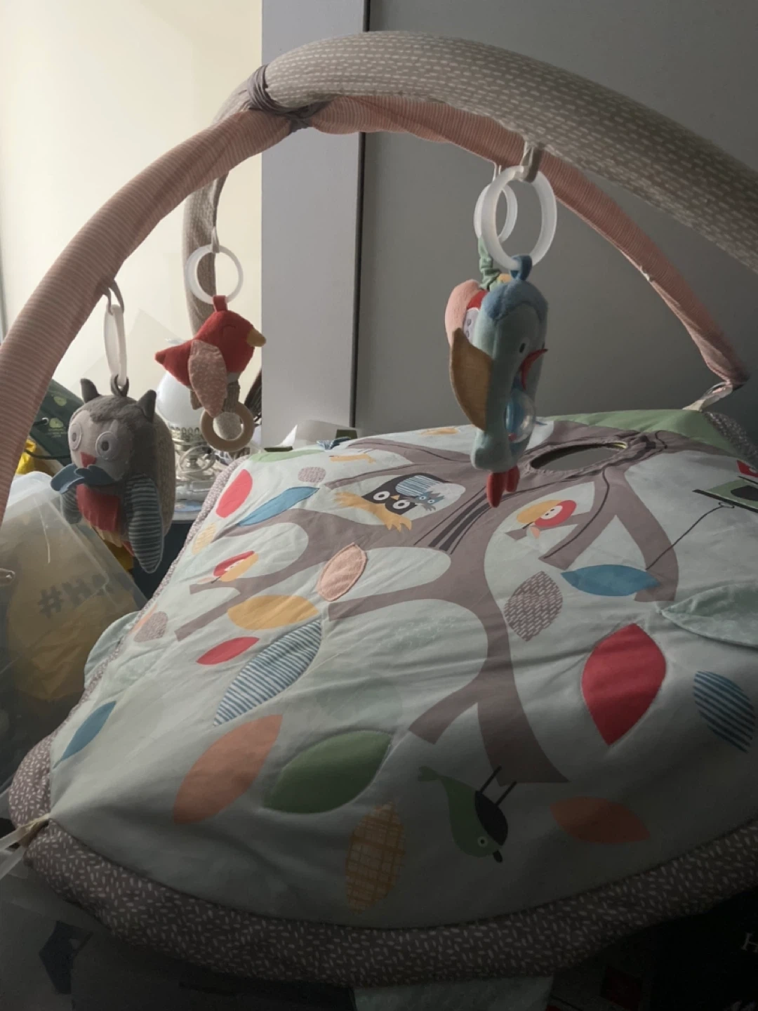 This play gym mat features a tree and animal design. It comes with several hanging toys for engagement. Suitable for infants. Pickup after 6pm this week near Osgoode subway downtown.