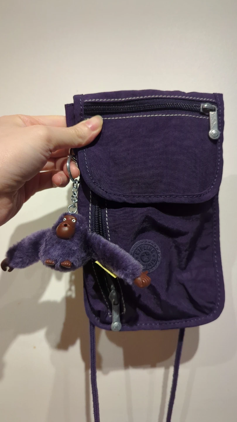 This purple Kipling crossbody bag is a convenient size for holding your phone and essentials. The bag comes with its signature Kipling monkey charm.