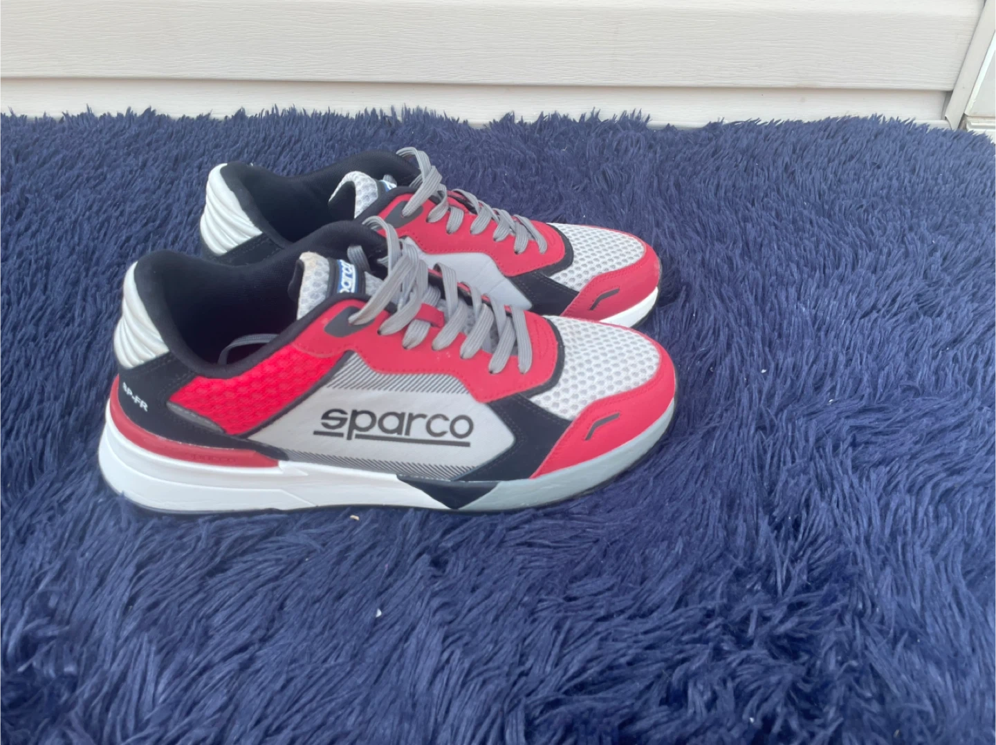 Sparco athletic shoes in red, grey, and black. These kicks feature a breathable mesh upper and lace-up closure. Comfortable for everyday wear!