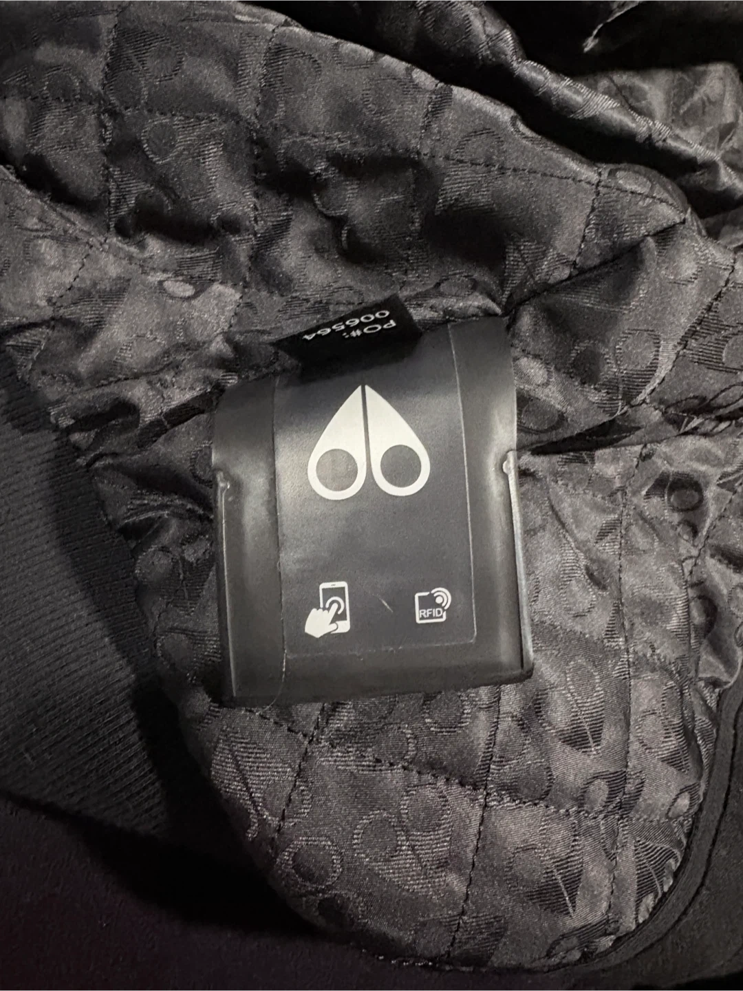 Cozy black Moose Knuckles hoodie with a plush white fur lining. It features the iconic Moose Knuckles logo on the chest and a comfortable zip-up design. This jacket is perfect for staying warm during cooler weather.