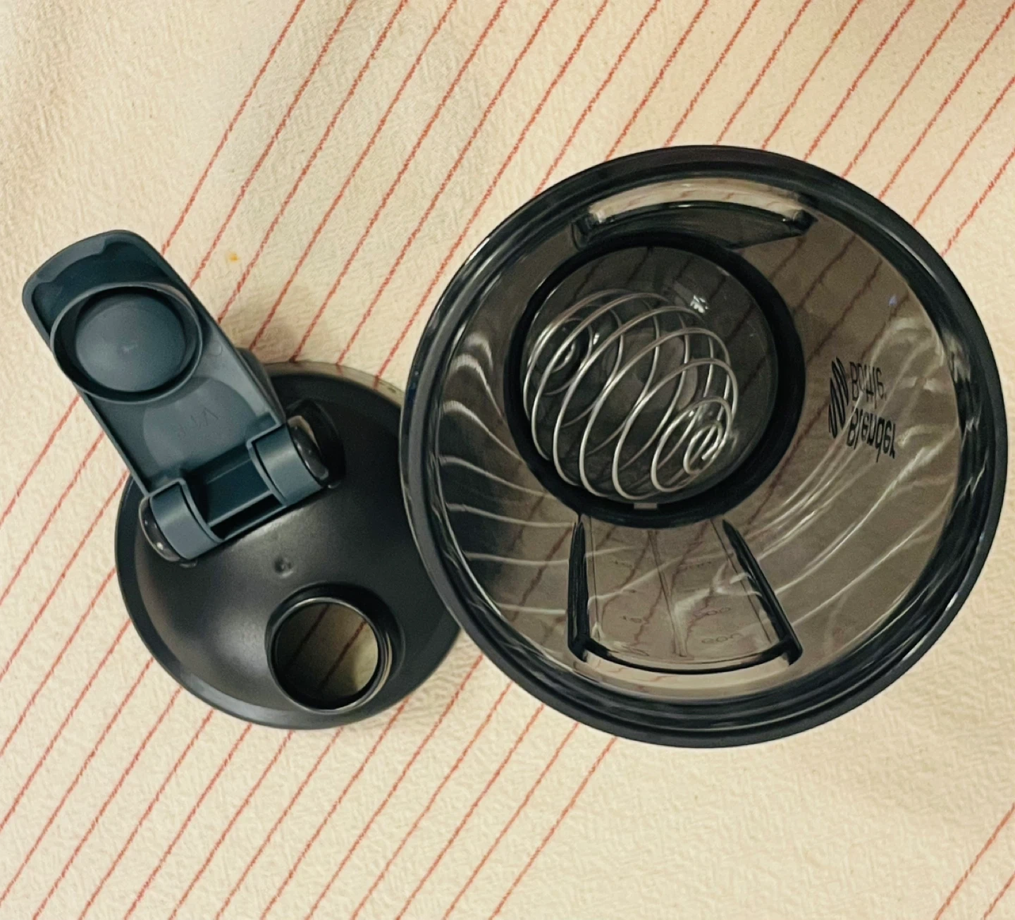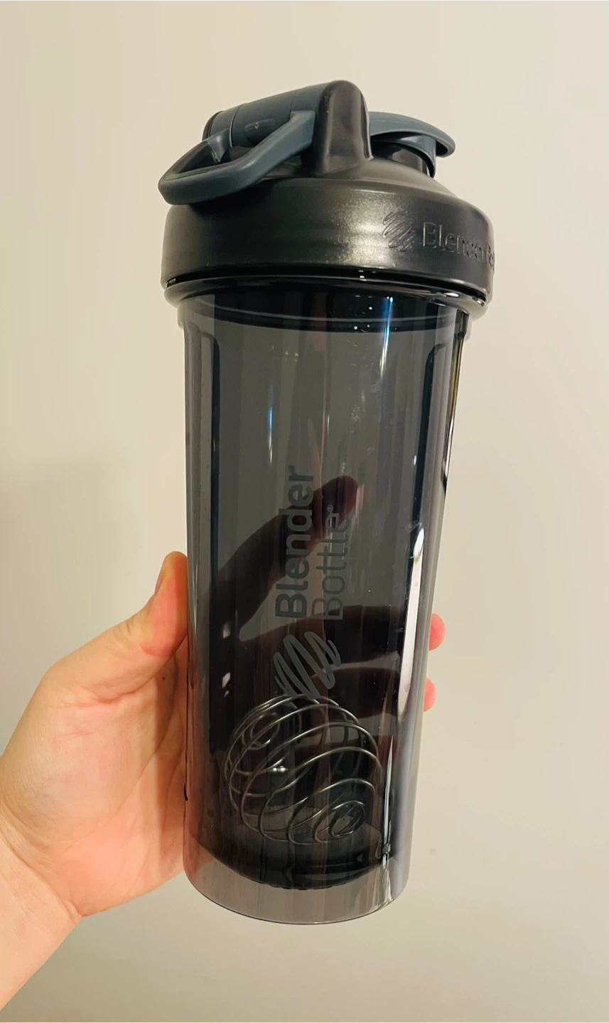 This is a BlenderBottle Classic shaker bottle with a 20 oz capacity. It's made of durable plastic and includes a wire whisk ball for mixing. The lid has a secure flip-top closure.