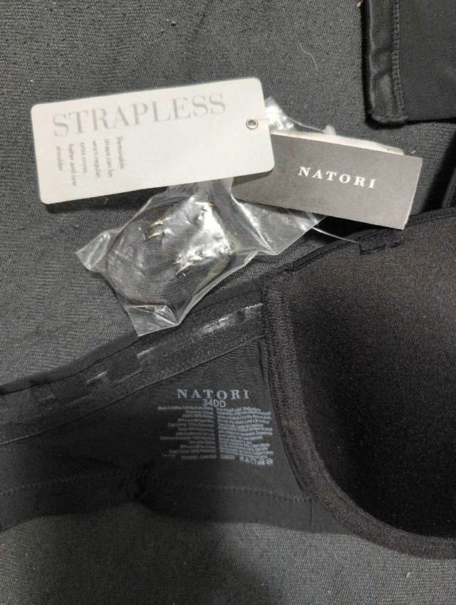 This is a Natori strapless bra in size 34DD. It is in brand new condition with tags. This bra offers excellent support and a smooth silhouette under clothing, making it a versatile addition to your lingerie collection. Brand: Natori, Size: 34DD, Style: Strapless, Colour: Black, Condition: New with tags. If the ad is up, then yes, it's still available!