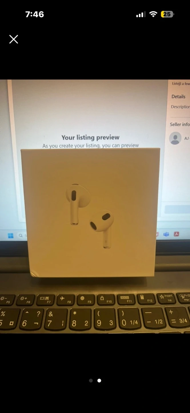 Apple AirPods (3rd generation) with MagSafe Charging Case. These wireless earbuds offer a comfortable fit and high-quality sound. Includes original packaging.
