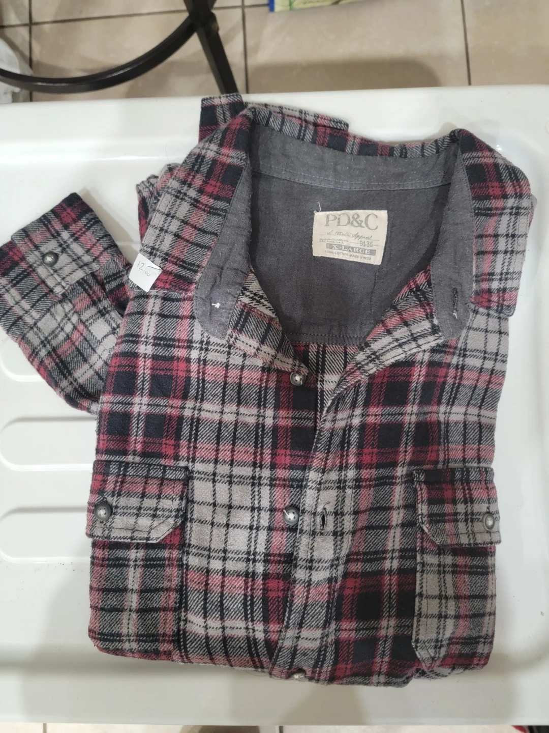 This PD&C flannel shirt comes in X-Large. It's made of 100% cotton. A comfy shirt for cooler weather!