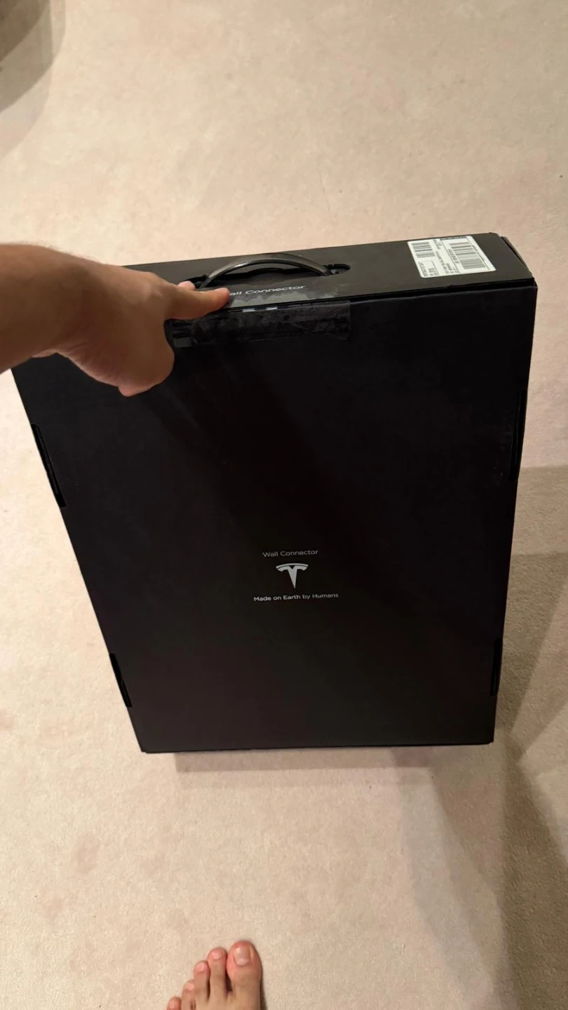 Tesla Wall Connector hardwired electric vehicle charger. It's 24 feet long and white. This charger offers up to 48A charging speed. Includes the original box.