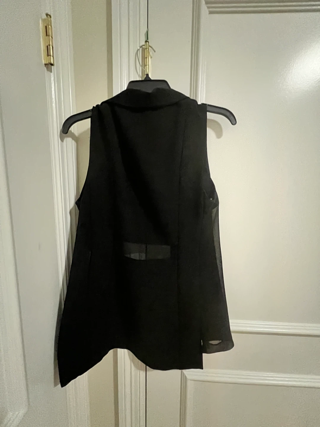 Black sleeveless vest from Zara Basic. It's made in Morocco and features a relaxed fit. This vest is a versatile layering piece.