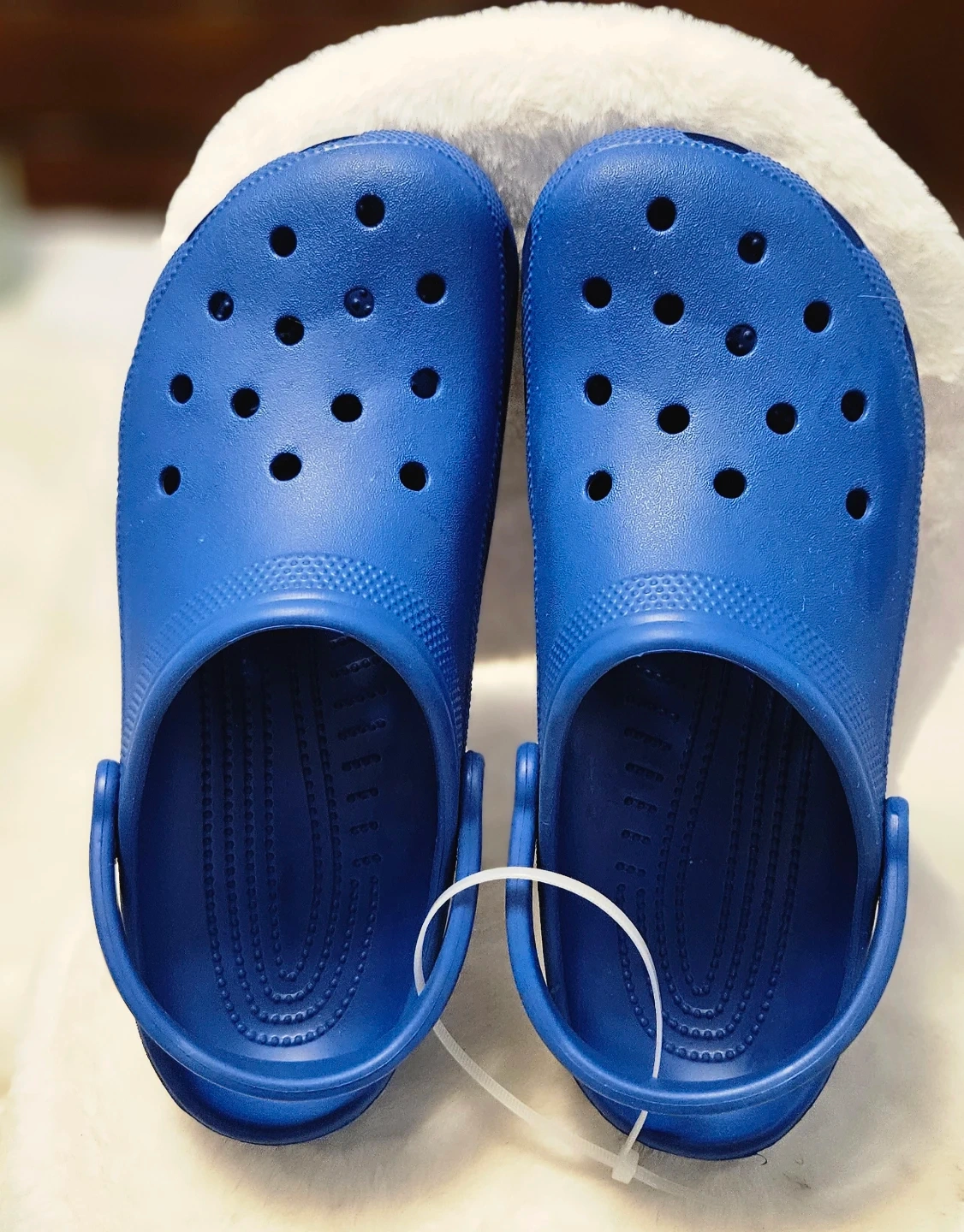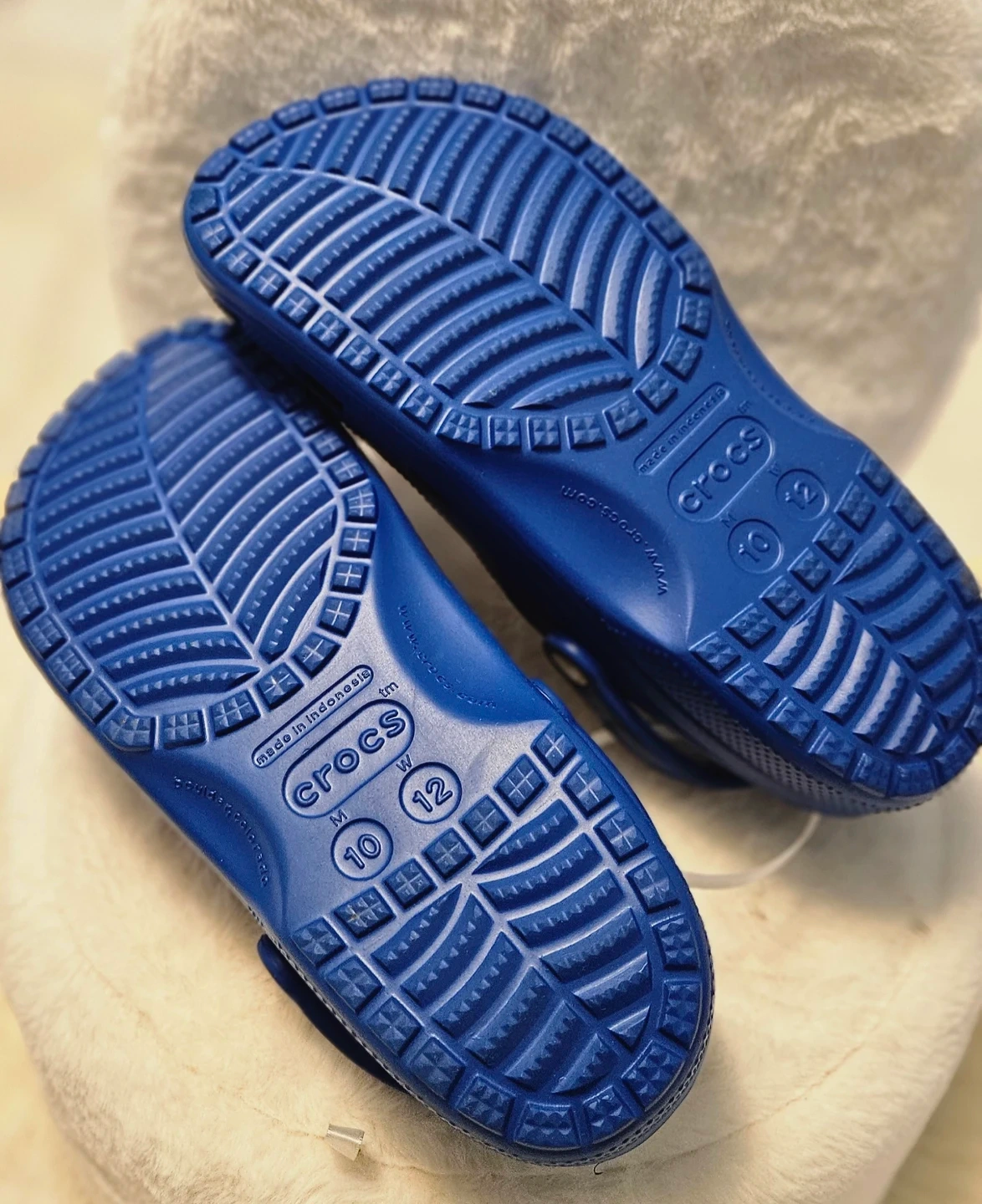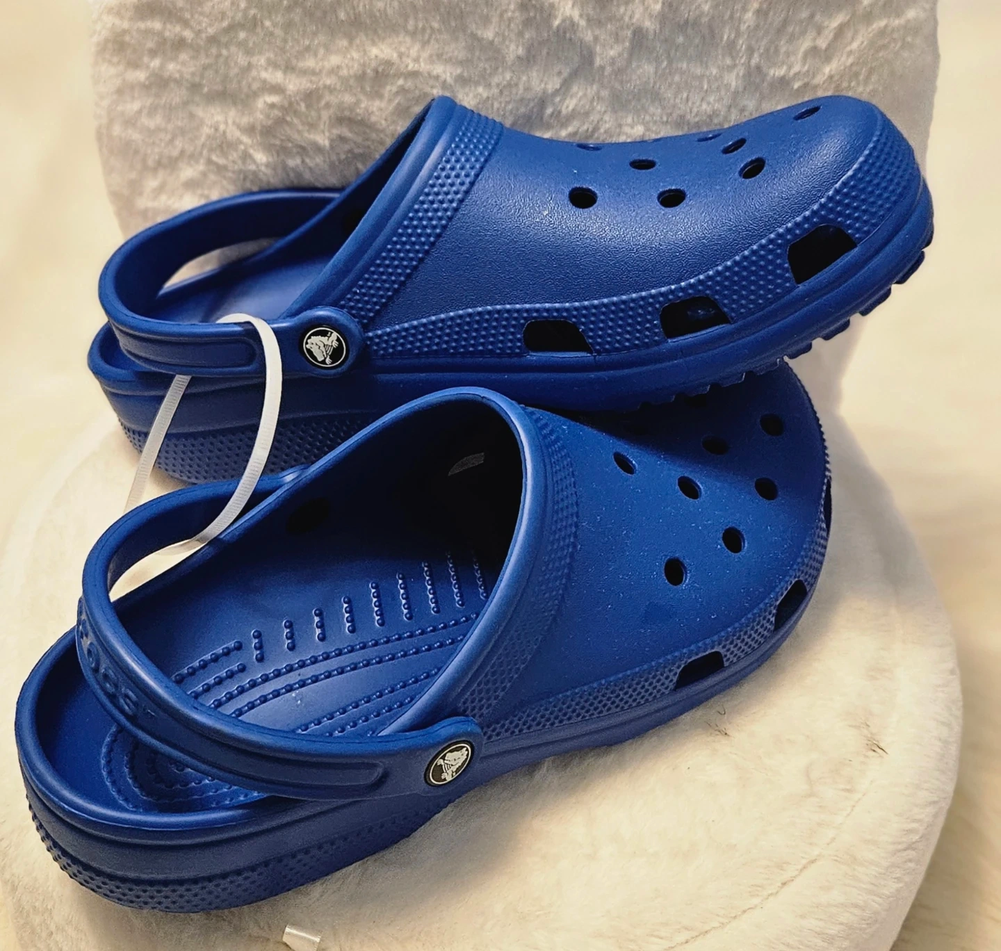 Blue Crocs clogs in size 10 Men & 12 Women. Made of Croslite material. Easy to clean and comfortable for everyday wear!