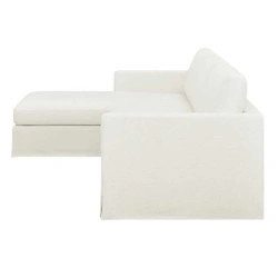 This is a beautiful white sofa with a chaise lounge, perfect for relaxing after a long day. It's very comfy and has plenty of room to stretch out. Colour: White, Material: Fabric, Style: Modern, Orientation: Left-Hand Facing. I’ve had a sofa cover on it, so it's well protected and looks very new!