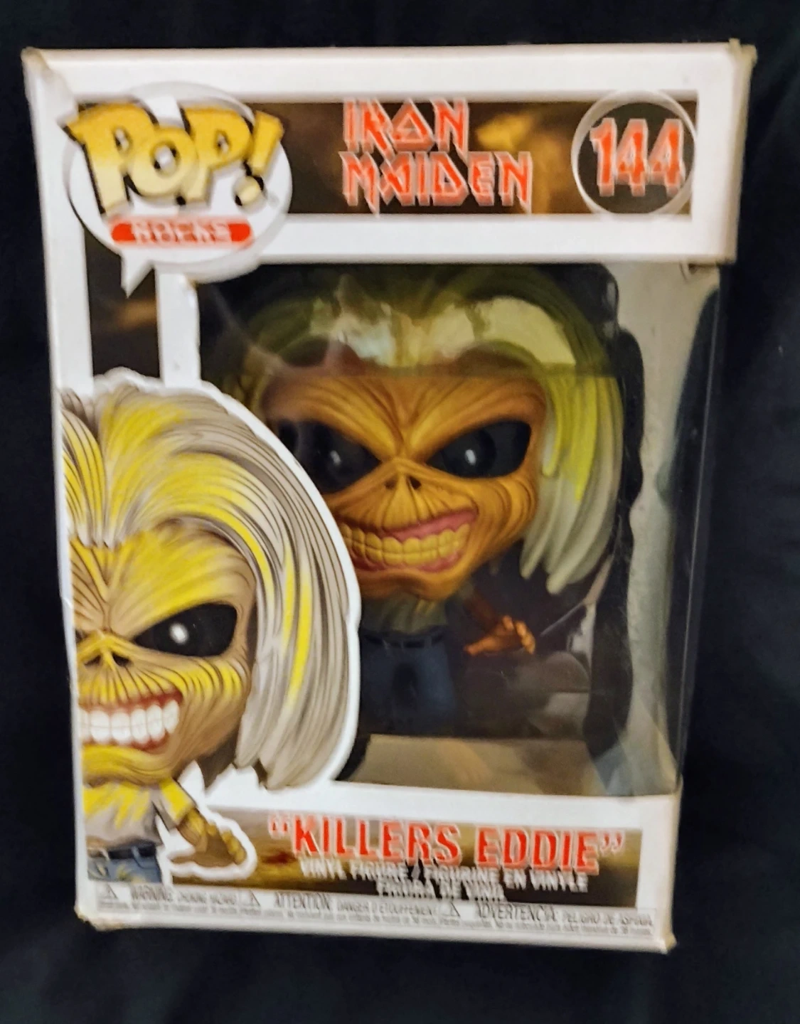 Collectibles featuring iconic musicians! Includes Metallica's Lady Justice (89), Iron Maiden's Piece of Mind Eddie (146), Aerosmith's Joe Perry (173), Guns N' Roses' Axl Rose (50), and Kiss's The Catman (124). These vinyl figures are brand new and sealed in their original boxes. They're perfect for any rock music enthusiast's collection!