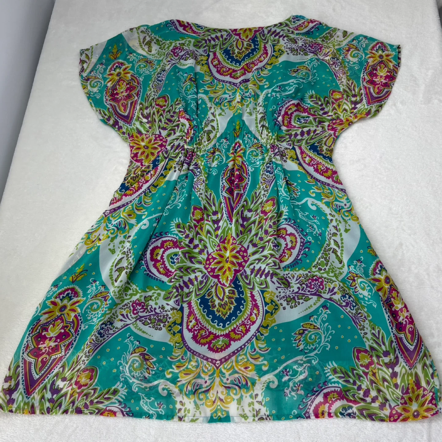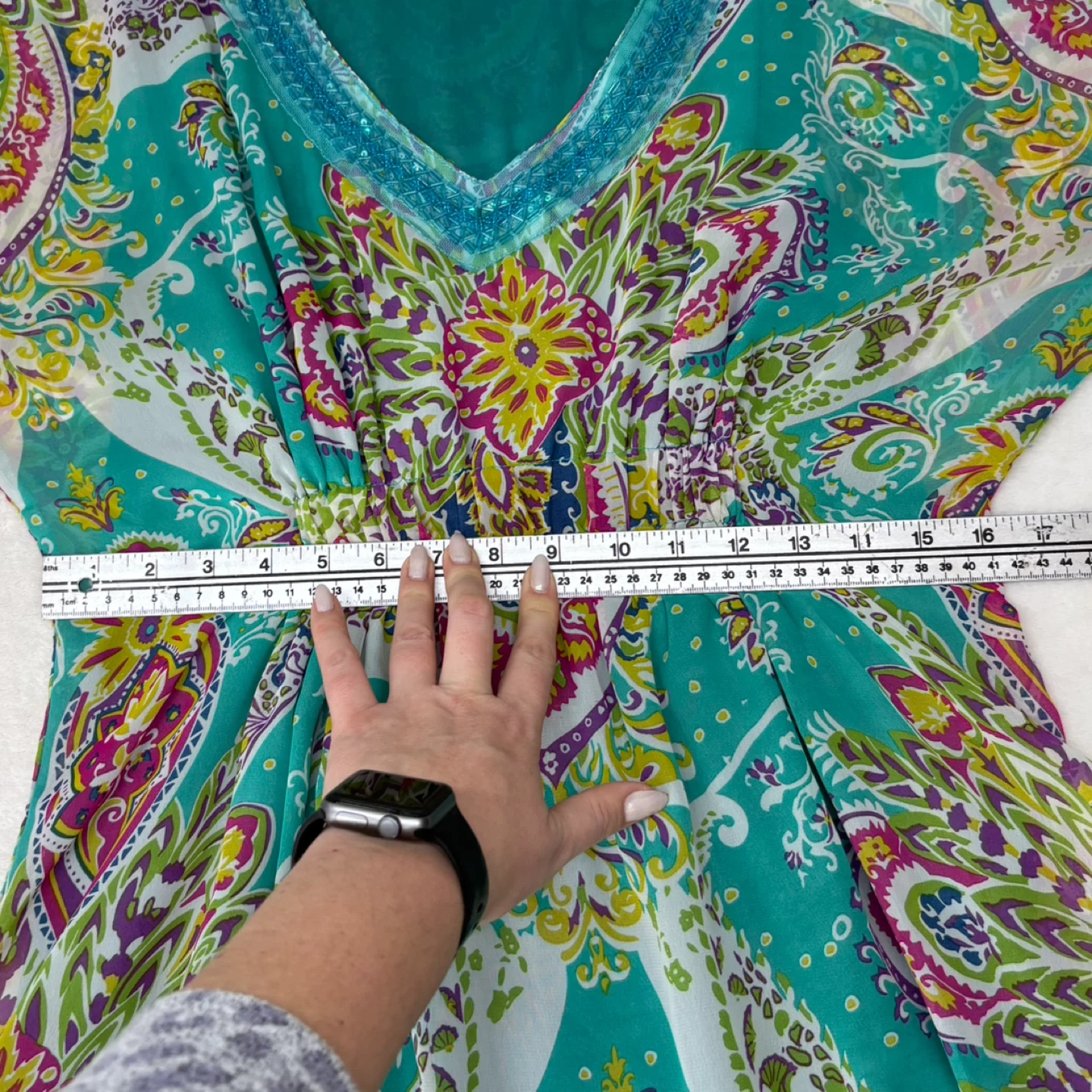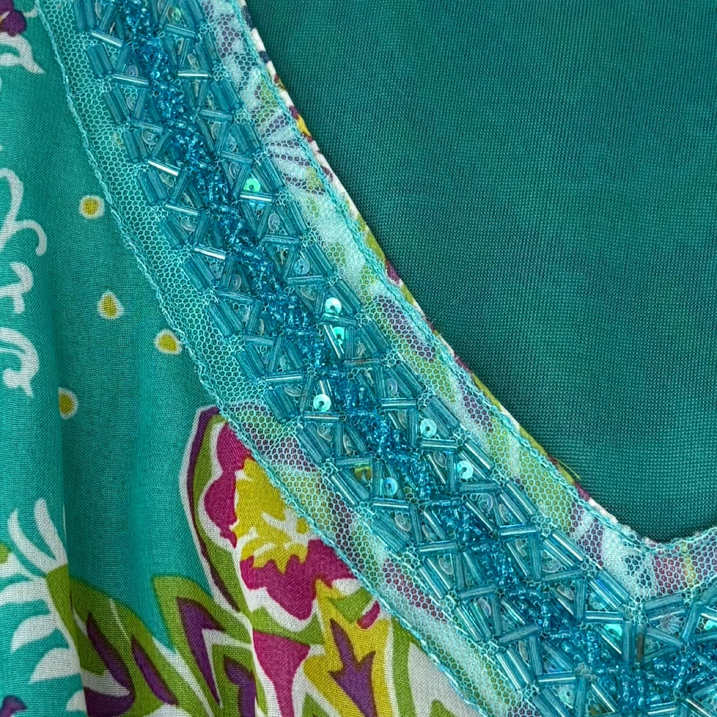 Jolie Boho Flowy Beaded Paisley Mini Dress Turquoise Teal Sz 12